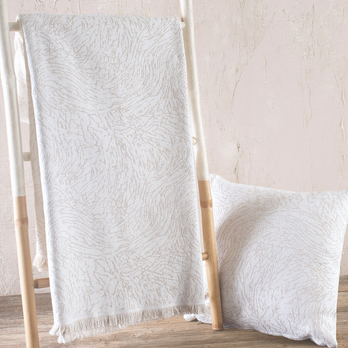 Ριχτάρι πολυθρόνας σε εκρού χρώμα με μοντέρνο σχέδιο από την εταιρεία Rythmos. Είναι κατασκευασμένο από ζακάρ ύφασμα σύνθεσης 80% βαμβάκι και 20% polyester, που το καθιστά ιδανικό για όλους τους μήνες του χρόνου. Διαθέτει κρόσσια στο τελείωμα. Συνδυάστε το με τα υπόλοιπα είδη της ίδιας σειράς για ένα αρμονικό αποτέλεσμα στο σαλόνι σας.