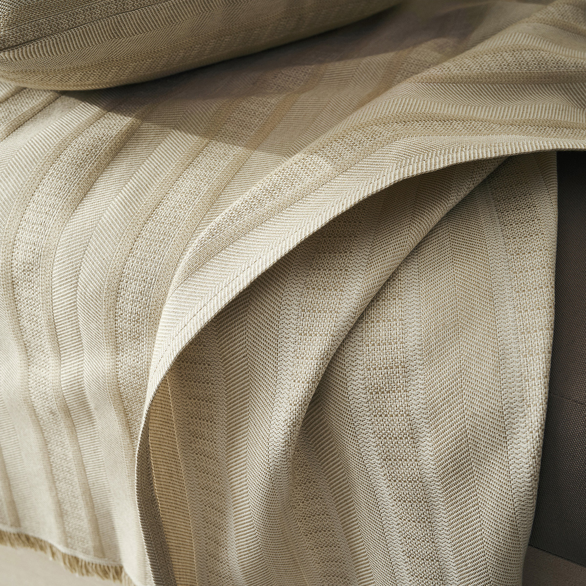 Ριχτάρι για την πολυθρόνα από την εταιρεία Gofis Home σε ανοιχτή πράσινη απόχρωση με κοντό κρόσσι. Στην ύφανση σχηματίζει ριγέ ανάγλυφο σχέδιο. Είναι κατασκευασμένο από 80% βαμβάκι και 20% polyester, με ευχάριστη αίσθηση στην αφή και ανθεκτικότητα. Ιδανικό για όλες τις εποχές του χρόνου. Για ένα αρμονικό αποτέλεσμα στο σαλόνι σας συνδυάστε το με τα υπόλοιπα είδη του ίδιου σετ.