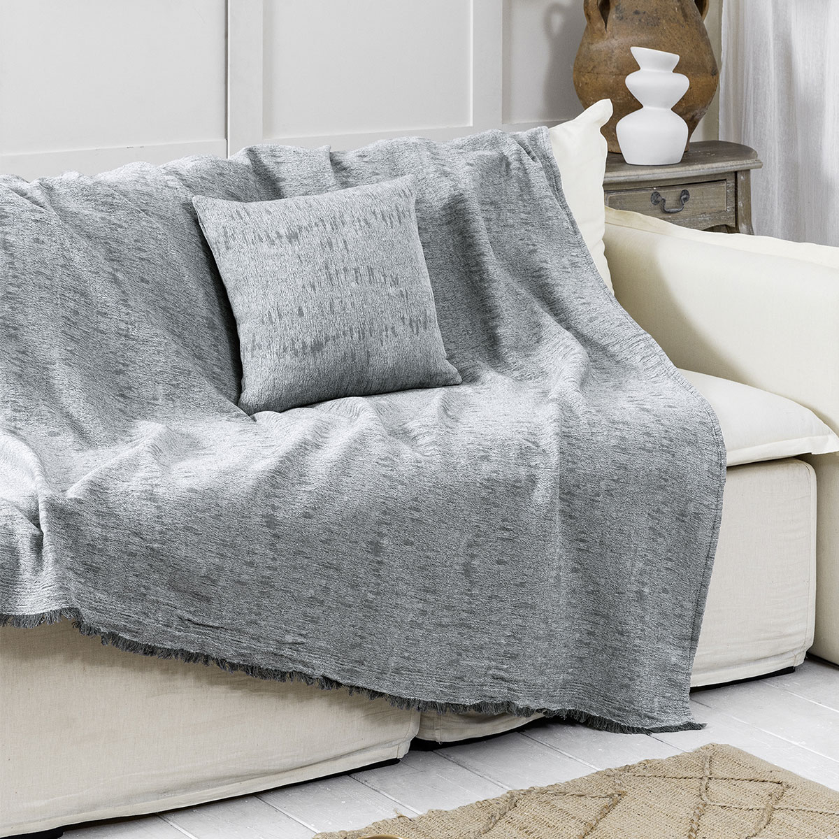 Ριχτάρι για την πολυθρόνα σε γκρι χρώμα, με διακοσμητικά κρόσια στο τελείωμα από την εταιρεία Nima. Η σύνθεσή του είναι 80% βαμβάκι 20% polyester που το καθιστά μαλακό και ανθεκτικό. Ιδανικό για όλους τους μήνες του χρόνου. Συνδυάστε το με τα υπόλοιπα είδη του ίδιου σχεδίου για ένα ολοκληρωμένο αποτέλεσμα.