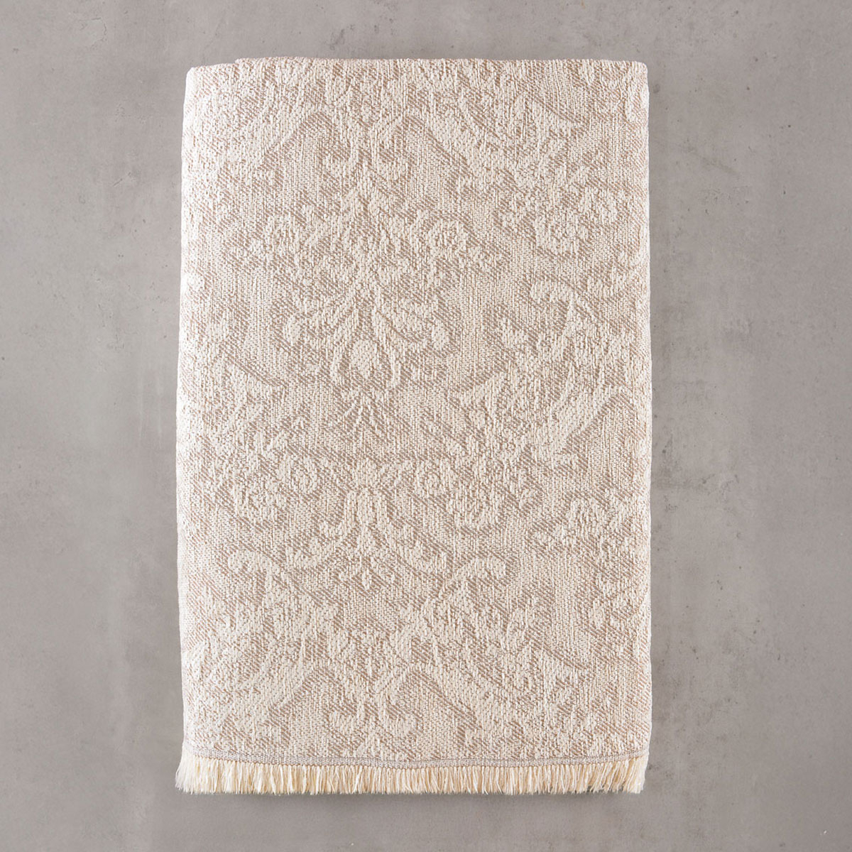 Ριχτάρι για τετραθέσιο καναπέ σε εκρού χρώμα με έθνικ σχέδιο, από την εταιρεία Rythmos. Είναι κατασκευασμένο από 50% chenille, 25% βαμβάκι και 25% polyester με ζακάρ ύφανση που προσφέρει μοναδική εφαρμογή και μαλακή υφή. Διαθέτει διακοσμητικά κρόσια στο τελείωμα. Στολίστε τον χώρο σας με στυλ και ποιότητα. Συνδυάστε το με τις υπόλοιπες διαστάσεις του ίδιου σχεδίου για ένα ολοκληρωμένο αποτέλεσμα.