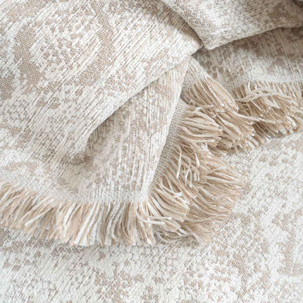 Ριχτάρι για τετραθέσιο καναπέ σε εκρού χρώμα, με εκρού λεπτομέρειες και animal print σχέδιο από την εταιρεία Rythmos. Το ύφασμα είναι από 50% chenille, 25% βαμβάκι και 25% polyester που το καθιστά μαλακό και ανθεκτικό. Ιδανικό για όλους τους μήνες του χρόνου και κυρίως τους χειμερινούς. Συνδυάστε το με τα υπόλοιπα είδη του ίδιου σχεδίου για ένα ολοκληρωμένο αποτέλεσμα.