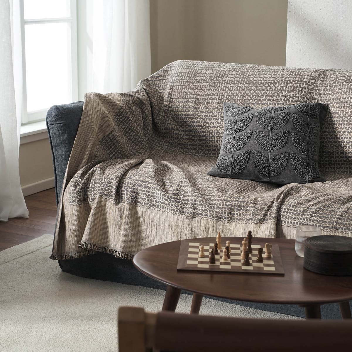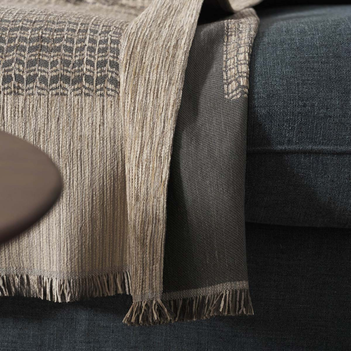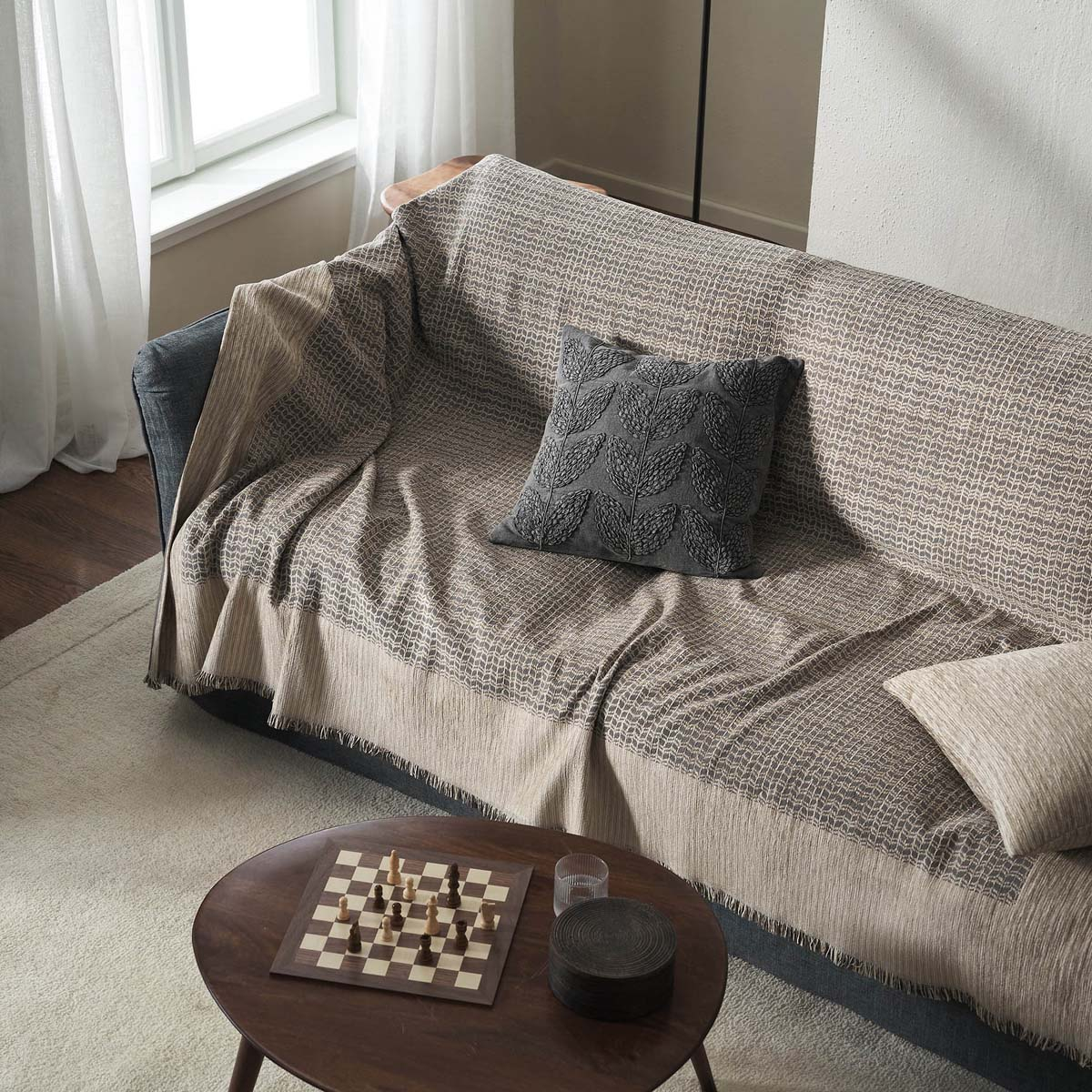 Ριχτάρι για τον τετραθέσιο καναπέ από την εταιρεία Gofis Home σε μπεζ και γκρι αποχρώσεις, με φαρδιά φάσα και κοντό κρόσσι. Κατασκευασμένο από 70% ακρυλικό chenille και 30% βαμβάκι, με μαλακή αίσθηση. Παραμένει σταθερό πάνω στην πολυθρόνα και είναι ιδανικό για τους χειμερινούς μήνες. Συνδυάστε το με τα υπόλοιπα προϊόντα της ίδιας συλλογής για ένα ολοκληρωμένο και αρμονικό αποτέλεσμα.