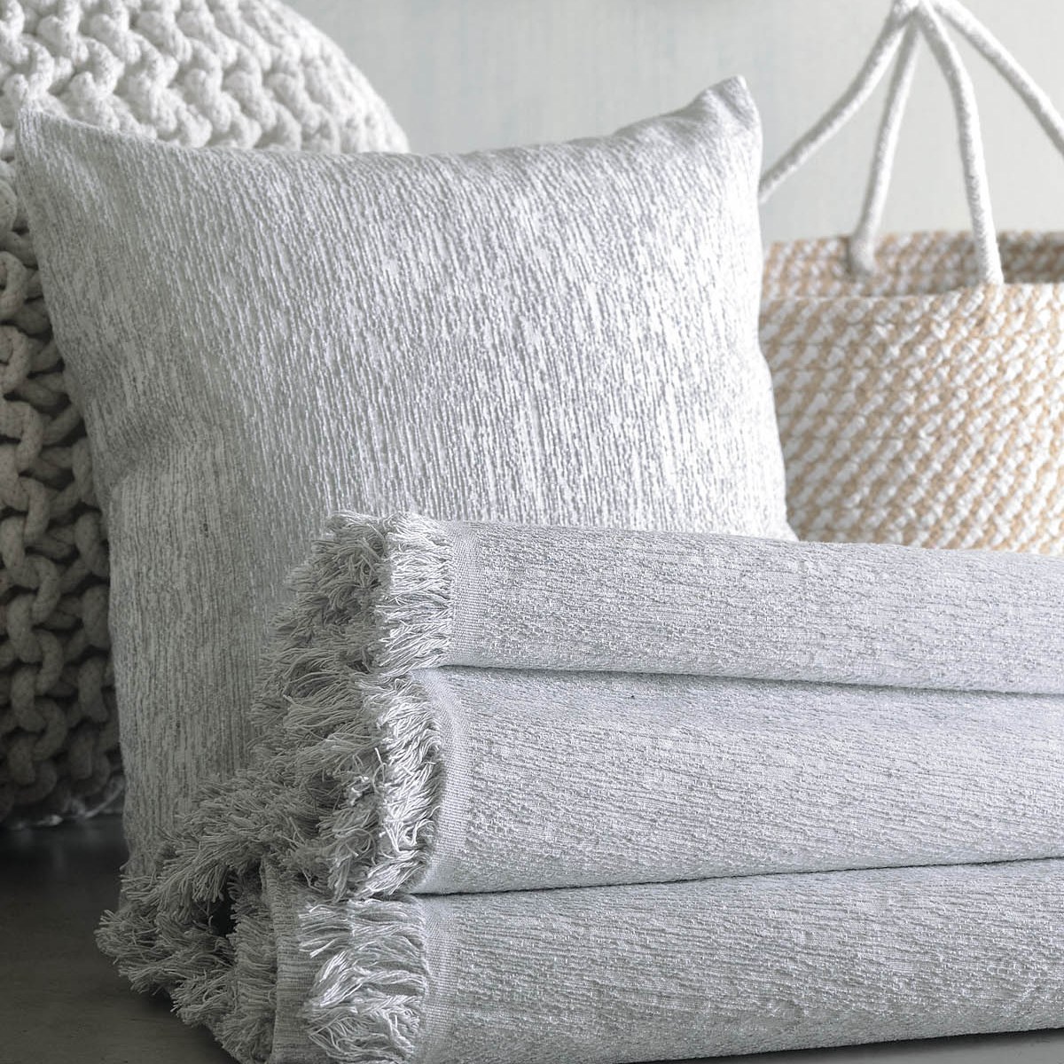 Ριχτάρι για τον τετραθέσιο καναπέ σε γκρι χρώμα από την εταιρεία Rythmos. Είναι κατασκευασμένο από 100% βαμβάκι που το καθιστά για όλο τον χρόνο. Διαθέτει διακοσμητικά κρόσια σε λευκό χρώμα στα πλαϊνά και γκρι στην μπροστινή και πίσω πλευρά. Συνδυάστε το με τα υπόλοιπα είδη της ίδιας σειράς για ένα ολοκληρωμένο σετ.