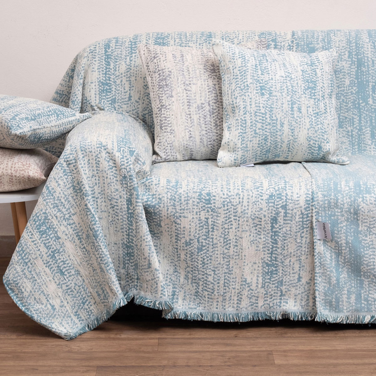 Ριχτάρι για τριθέσιο καναπέ σε γαλάζιο χρώμα, με εκρού λεπτομέρειες και μοντέρνο σχέδιο από την εταιρεία Anna Riska. Κατασκευασμένο από chenille ύφασμα με σύνθεση 55% ακρυλικό 25% βαμβάκι 20% polyester που το καθιστά ιδανικό για τους χειμερινούς μήνες. Στρώστε το στην πολυθρόνα για την προστατέψετε από τη φθορά και τους λεκέδες. Συνδυάστε το με τα υπόλοιπα είδη της ίδιας σειράς για ένα ολοκληρωμένο αποτέλεσμα στο σαλόνι σας.