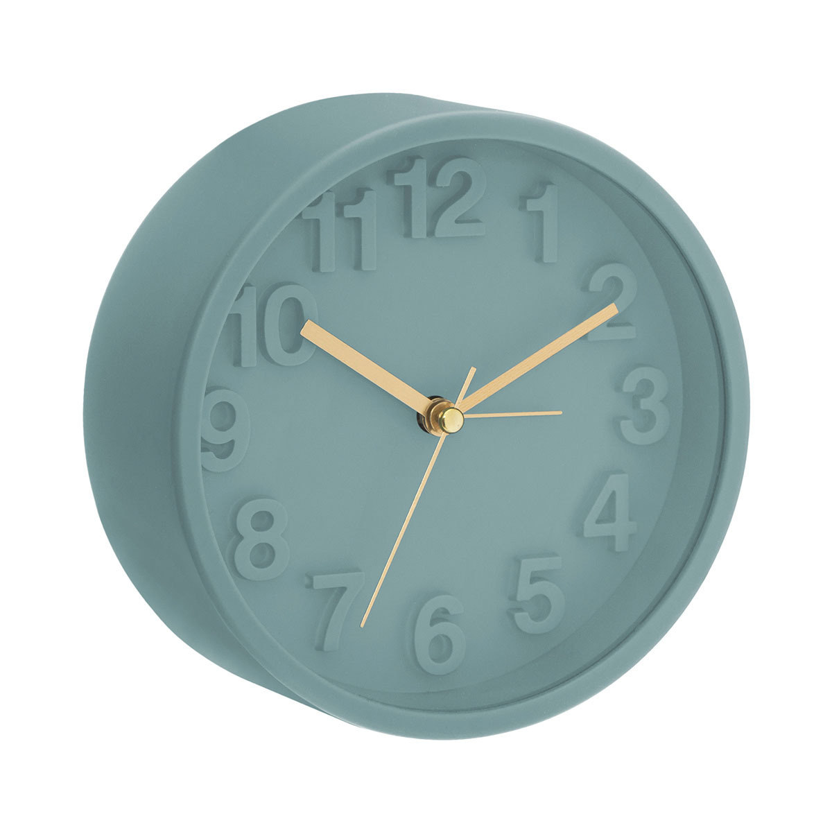 Επιτραπέζιο ρολόι - ξυπνητήρι με μοντέρνα αισθητική. Είναι κατασκευασμένο από πλαστικό υλικό σε ανοιχτό μπλε χρώμα και έχει στρογγυλό σχήμα. Λειτουργεί με 1 AA μπαταρία LR6 η οποία δεν περιλαμβάνεται. Ιδανικό να τοποθετηθεί στο κομοδίνο ή το γραφείο σας καθώς είναι αθόρυβο, δηλαδή δεν ακούγονται οι χτύποι του.