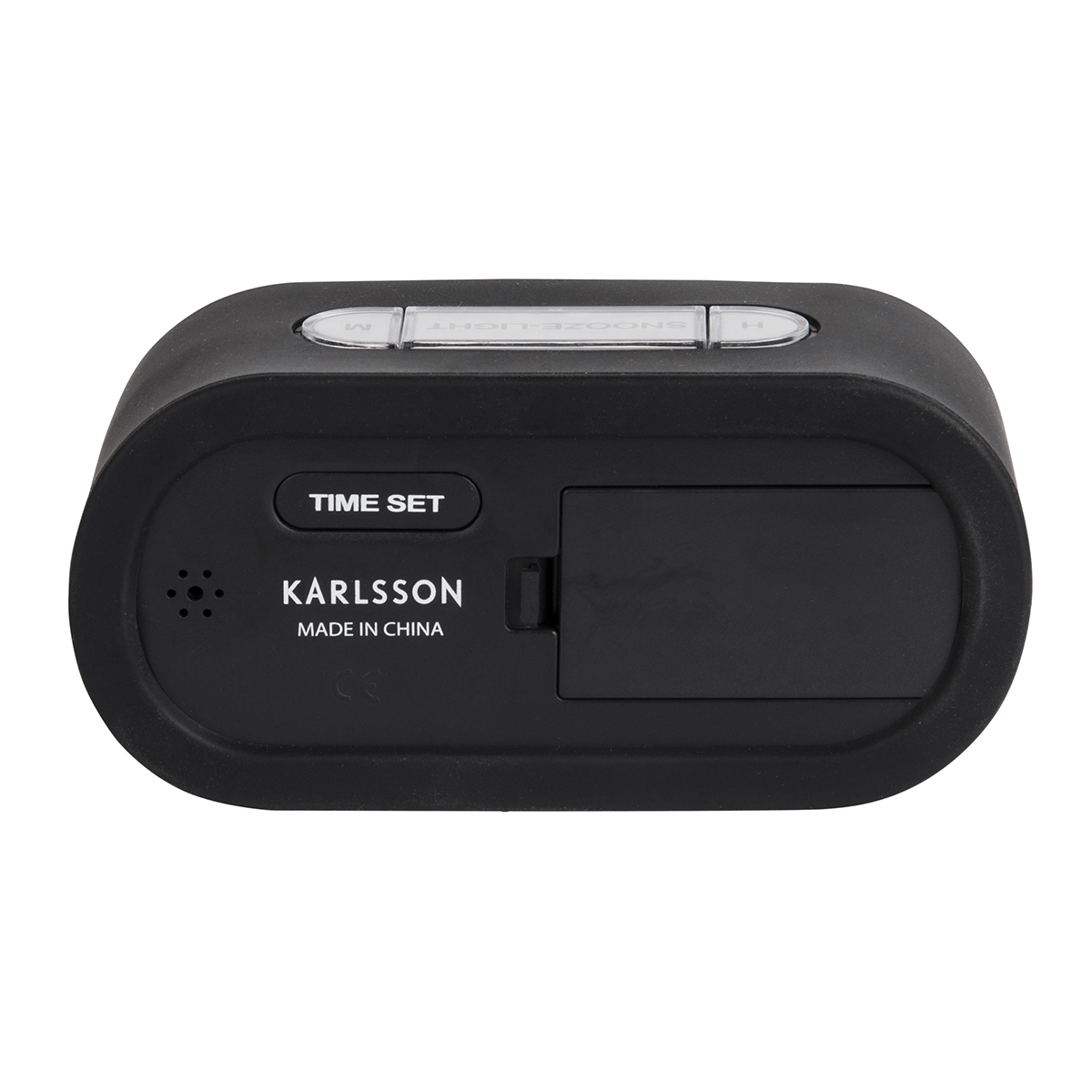 Επιτραπέζιο ρολόι - ξυπνητήρι σε μαύρο χρώμα, με μοντέρνο σχεδιασμό από την εταιρεία Karlsson. Κατασκευασμένο από σιλικόνη. Λειτουργεί με 1 AAΑ μπαταρία η οποία δεν περιλαμβάνεται. Ιδανικό να τοποθετηθεί σε οποιοδήποτε κομοδίνο ακόμα και στο γραφείο σας. Εγγύηση 2 χρόνια.