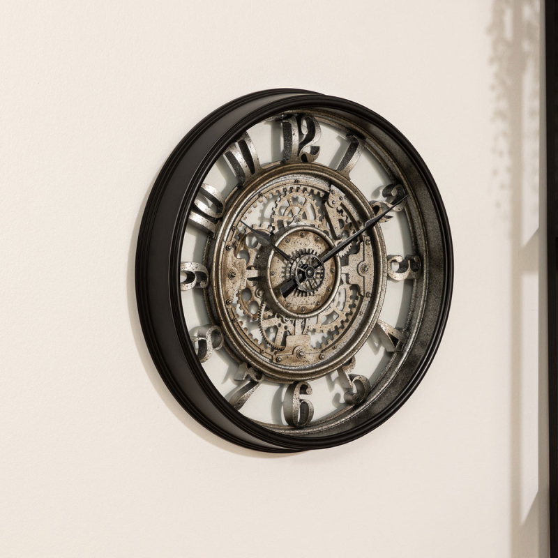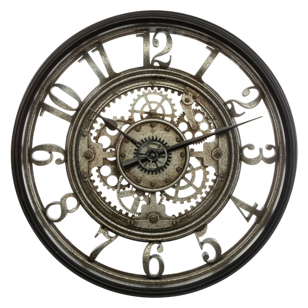 Ρολόι τοίχου μεγάλο με αθόρυβη λειτουργία σε vintage ύφος. Είναι κατασκευασμένο από πλαστικό υλικό σε γκρι απόχρωση με εκρού-χρυσές λεπτομέρειες και γυάλινη όψη. Λειτουργεί με 1 μπαταρία AA LR6, η οποία δεν περιλαμβάνεται. Ιδανικό να τοποθετηθεί σε όλους τους χώρους του σπιτιού ή στο γραφείο, καθώς δεν ακούγονται οι χτύποι του.