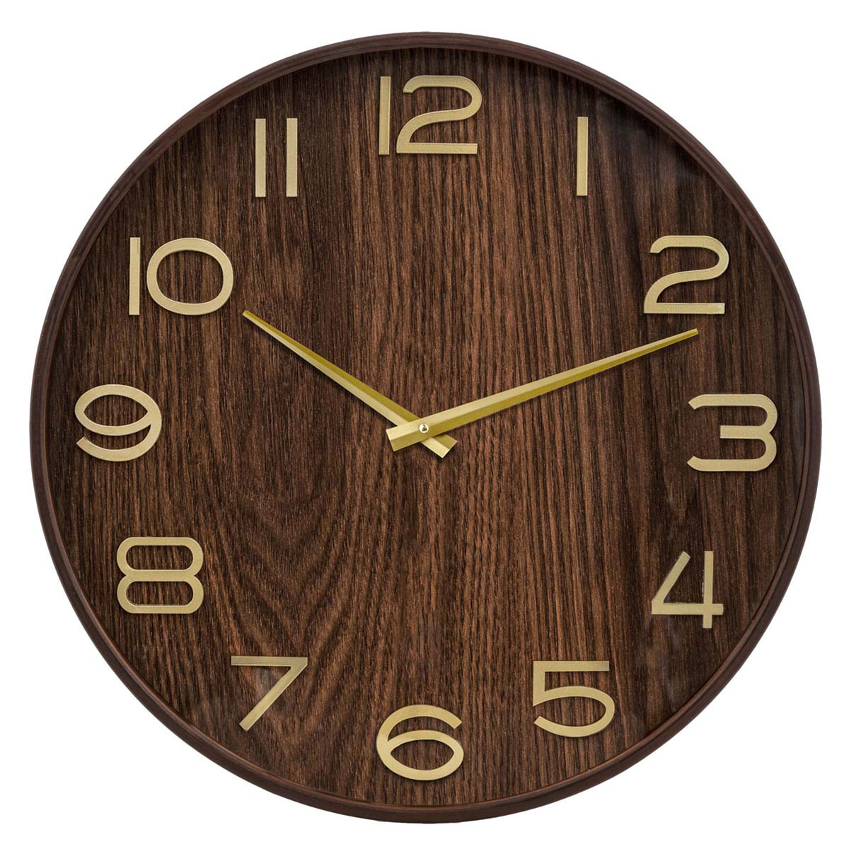 Ρολόι τοίχου με αθόρυβη λειτουργία σε μοντέρνο ύφος. Είναι κατασκευασμένο από MDF και μοριοσανίδα σε καφέ απόχρωση. Λειτουργεί με 1 μπαταρία LR6-AA, η οποία δεν περιλαμβάνεται. Ιδανικό να τοποθετηθεί σε όλους τους χώρους του σπιτιού, καθώς δεν ακούγονται οι χτύποι του.