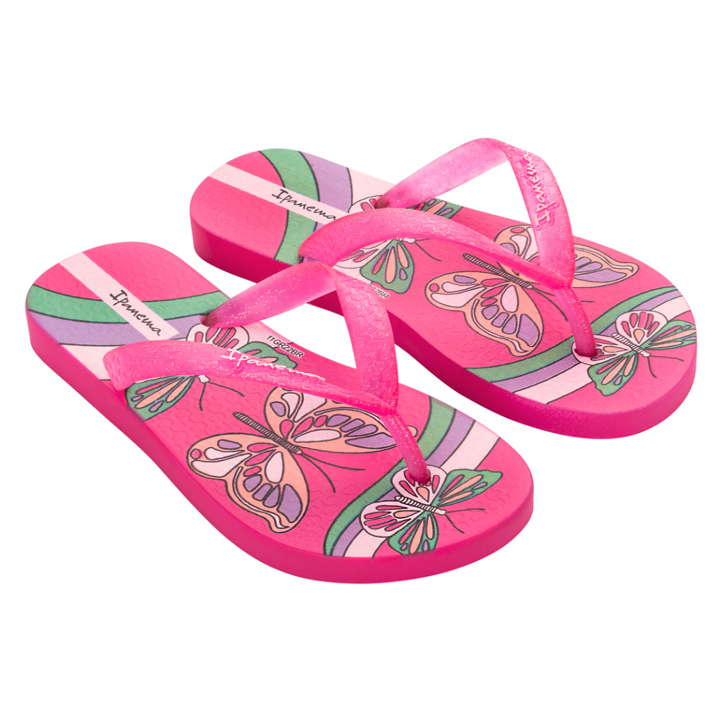 Παιδικές σαγιονάρες θαλάσσης από την εταιρεία Ipanema σε φούξια απόχρωση. Έχει σχέδιο με πεταλούδες και γκλίτερ. Είναι κατασκευασμένες από 100% ανακυκλώσιμο και vegan latex, που εξασφαλίζει αντοχή και προστατεύει από τη δυσοσμία. Διαθέτουν αντιολισθητική σόλα για μεγαλύτερη σταθερότητα. Το ύψος του τακουνιού είναι 1εκ. και το ύψος της φιάπας είναι 1εκ. Είναι ιδανικές τόσο για το σπίτι και τη βόλτα, όσο και για την παραλία. Χώρα προέλευσης: Βραζιλία. *Προτείνεται στα προϊόντα Ipanema να αγοράσετε 1 νούμερο μεγαλύτερο από το μέγεθος του πέλματος σας.*