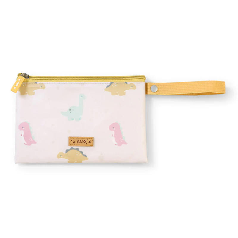 Επαναχρησιμοποιούμενο snack bag της εταιρείας Saro. Έχει εκρού χρώμα με πολύχρωμες λεπτομέρειες και σχέδιο δεινόσαυροι. Το εξωτερικό ύφασμα είναι κατασκευασμένο από ανακυκλωμένα πλαστικά που το καθιστά ιδιαίτερα ανθεκτικό . Το εσωτερικό είναι κατασκευασμένο από υλικό PEVA , χωρίς BPA, PVC, ελεύθερα τοξικών και φθαλικές ενώσεις. Με αδιάβροχη επένδυση που το καθιστά ιδανικό για οποιοδήποτε σνακ ή φαγητό του παιδιού σας. Κλείνει με φερμουάρ. Μπορείτε ακόμη να το χρησιμοποιήσετε και σαν τσαντάκι οργάνωσης για παιχνίδια, πιπίλες και καλλυντικά στην βόλτα ή το ταξίδι.