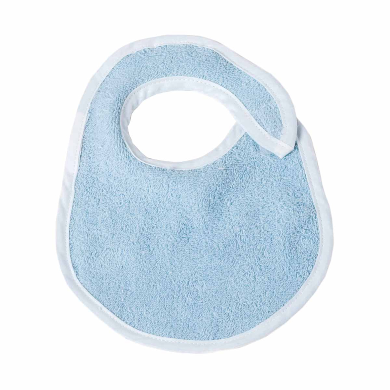 Βρεφική από την εταιρεία "Κόσμος του Μωρού" σε γαλάζια απόχρωση. Είναι απορροφητική και ανθεκτική, κατασκευασμένη από υδρόφιλη, πυκνή πετσέτα 100% βαμβακερή. Είναι αντιπνικτική και εύχρηστη, καθώς διαθέτει velcro straps και όχι κορδόνια. Κατάλληλη για βρέφη έως περίπου 5 μηνών. Ελληνικής κατασκευής.