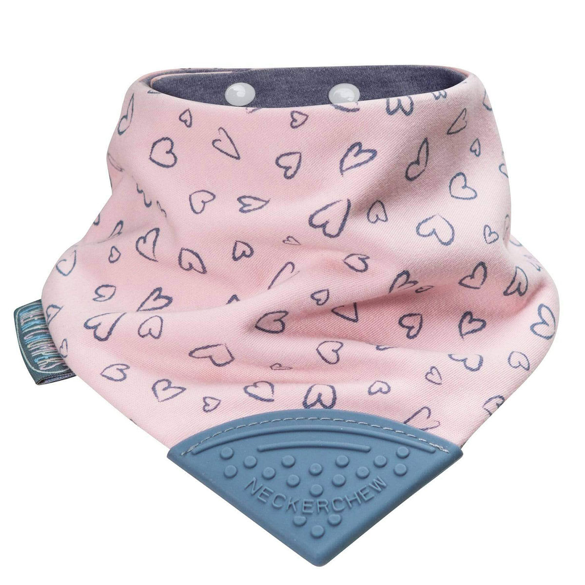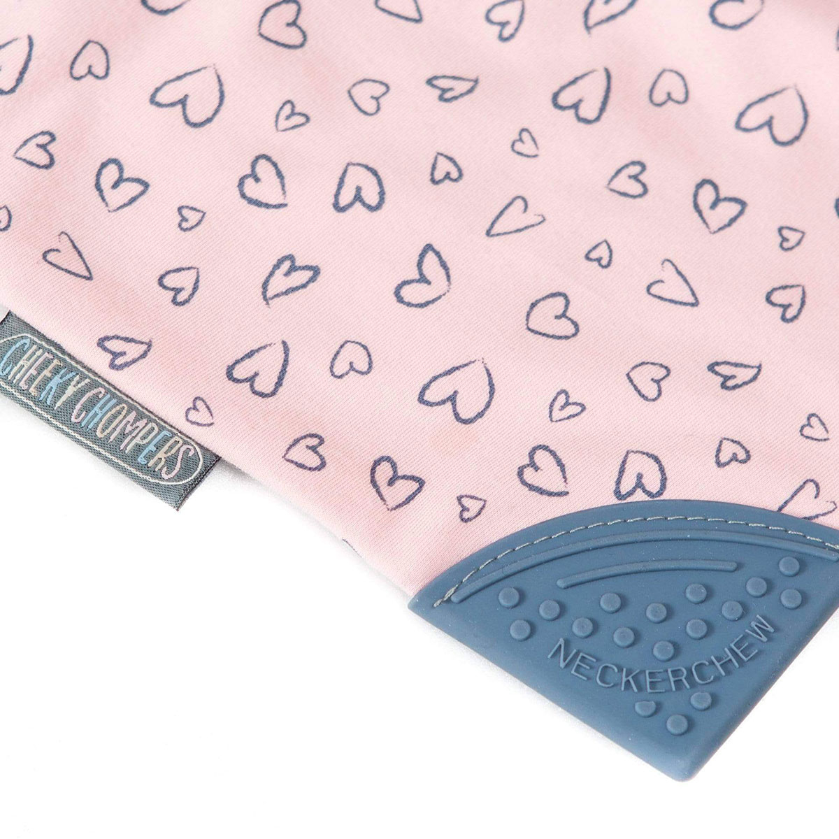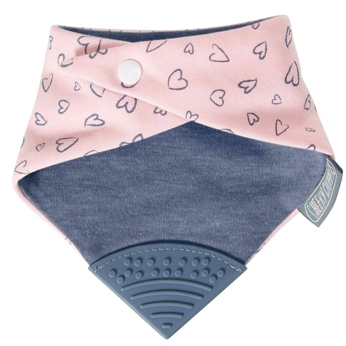 Σαλιάρα μπαντάνα με μασητικό σε ροζ-μπλε χρώμα και σχέδιο καρδούλες από την εταιρία Cheeky Chompers. Η ποιότητά της είναι από 100% βαμβάκι που την καθιστά ανθετική και μαλακή. Το εξωτερικό στρώμα είναι από μαλακό βαμβάκι με απορροφητικό μεσαίο στρώμα. Μπορεί να φορεθεί και από τις δύο πλευρές καθώς είναι διπλής όψης. Έχει δύο ρυθμιζόμενα κουμπιά για να την προσαρμόσετε στο επιθυμητό μέγεθος. Το μασητικό που διαθέτει στο κάτω μέρος είναι από 100% σιλικόνη κατάλληλη για τρόφιμα (εγκεκριμένη από τον FDA), χωρίς φθαλικά άλατα ή BPA και δε ξεφλουδίζει. Ιδανική και πρακτική λύση καθώς μπορείτε να συνδυάστε την ανακούφιση από τον πόνο στα ούλα και των δοντιών του παιδιού σας χωρίς να ανησυχείτε αν έπεσε κάτω το μασητικό, αλλά και να προστατεύσετε το μωρό σας από ανεπιθύμητους λεκέδες. Καθαρίζεται εύκολα στο πλυντήριο. Όλα τα προϊόντα έχουν ελεγχθεί με ασφάλεια σύμφωνα με τα υψηλότερα πρότυπα παγκοσμίως.