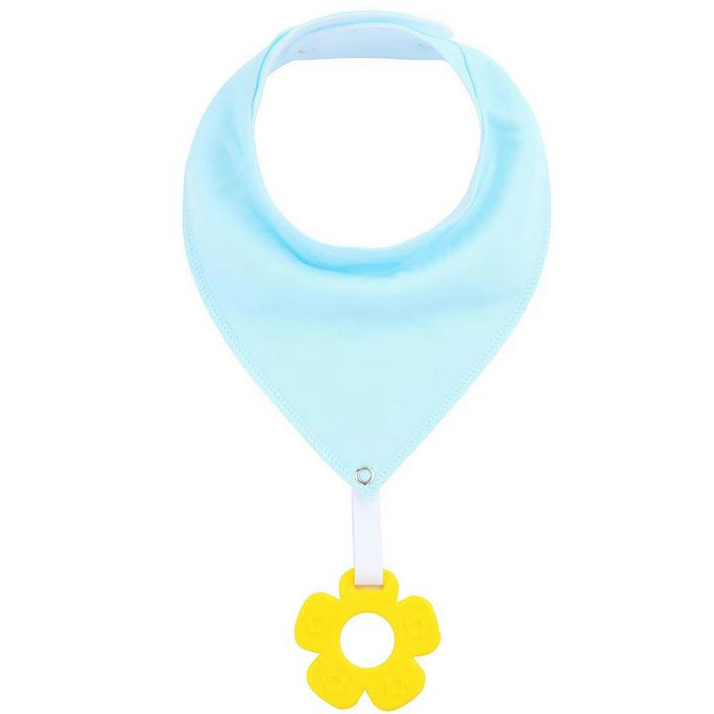 Σαλιάρα-μπαντάνα με μασητικό σε γαλάζιο χρώμα και κίτρινο μασητικό από την εταιρία Morven. Είναι κατασκευασμένη από 100% βαμβάκι με την μπροστά όψη να είναι μακό και την πίσω φανέλα. Διαθέτει αφαιρούμενο μασητικό για να ανακουφίζεται το μικρό σας από τους πόνους της οδοντοφυΐας και των ούλων. Κλείνει με κουμπιά στο πίσω μέρος γύρω απότον λαιμό. Ιδανική για να προστατευτεί το μικρό σας από ανεπιθύμητους λεκέδες αλλά και να καταπραΰνει τον πόνο των ούλων.