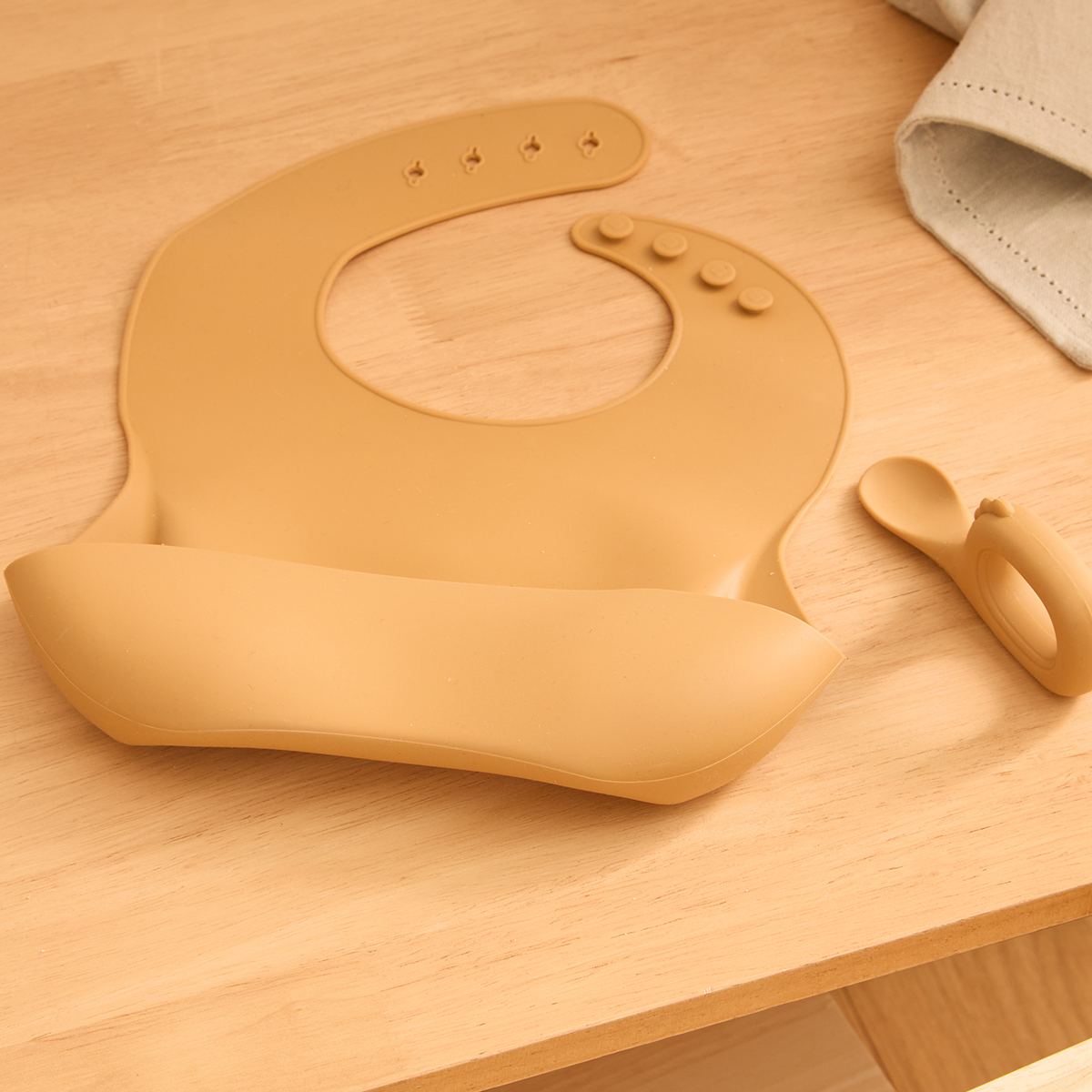 | SpitishopΣαλιάρα Σιλικόνης 6+ Μηνών (22x2x26) & Κουτάλι Σετ 2τμχ A-S Yum Ocre 211062D