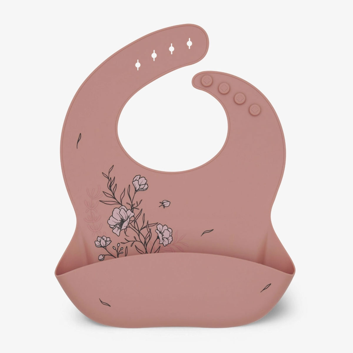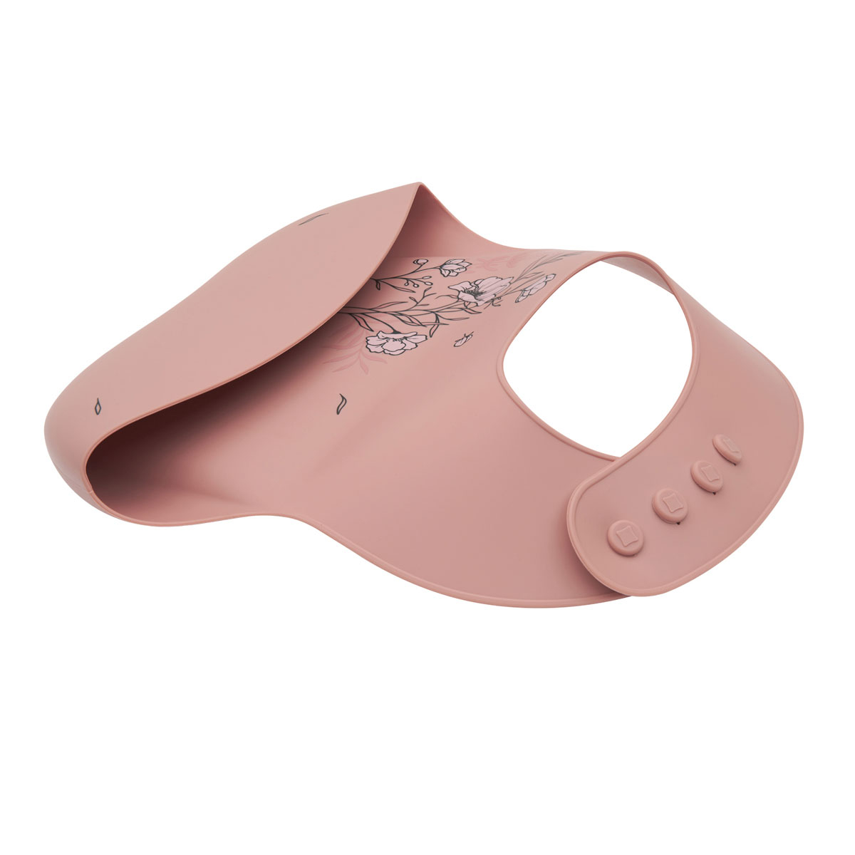 Σαλιάρα σιλικόνης από την εταιρία Kikka Boo σε ροζ χρώμα με φλοράλ σχέδιο. Είναι κατασκευασμένη από πλατινένια σιλικόνη απαλλαγμένη από BPA. Η ποιότητά της, της επιτρέπει να αντέχει σε θερμοκρασίες από -40°C έως 230°C. Επίσης, είναι μαλακό, εύκαμπτο και άοσμο υλικό. Διαθέτει θήκη για να μην πέφτουν τροφές και ψίχουλα στο πάτωμα και να διατηρούνται τα ρούχα καθαρά. Με ρυθμιζόμενο κούμπωμα στο λαιμό για άνετη εφαρμογή. Κατάλληλη για βρέφη 6 μηνών και άνω.