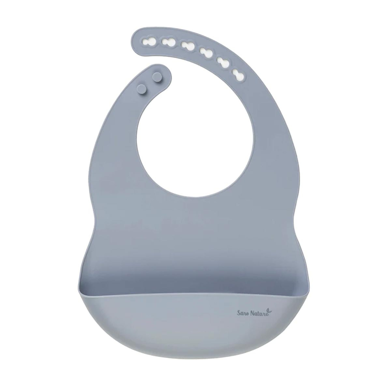 Σαλιάρα σιλικόνης αδιάβροχη σε μπλε χρώμα από την εταιρία Saro. Είναι κατασκευασμένη από 100% σιλικόνη κατάλληλη για τρόφιμα και φιλική προς το περιβάλλον. Έχει μαλακή υφή, δεν παραμορφώνεται καθώς είναι εύκαμπτη και διαθέτει μία θήκη στο κάτω μέρος για να μαζεύει τυχόν ψίχουλα και λεκέδες. Καθαρίζεται εύκολα μετά από κάθε χρήση με ένα υγρό πανάκι που την καθιστά αντιμικροβιακή. Τοποθετείται και αφαιρείται εύκολα με μαλακά κουμπιά, ενώ έχει 6 διαφορετικές θέσεις κουμπώματος, ώστε προσαρμόζεται σωστά στο λαιμουδάκι του μωρού σας. Κατάλληλη για ηλικίες 6+ μηνών.