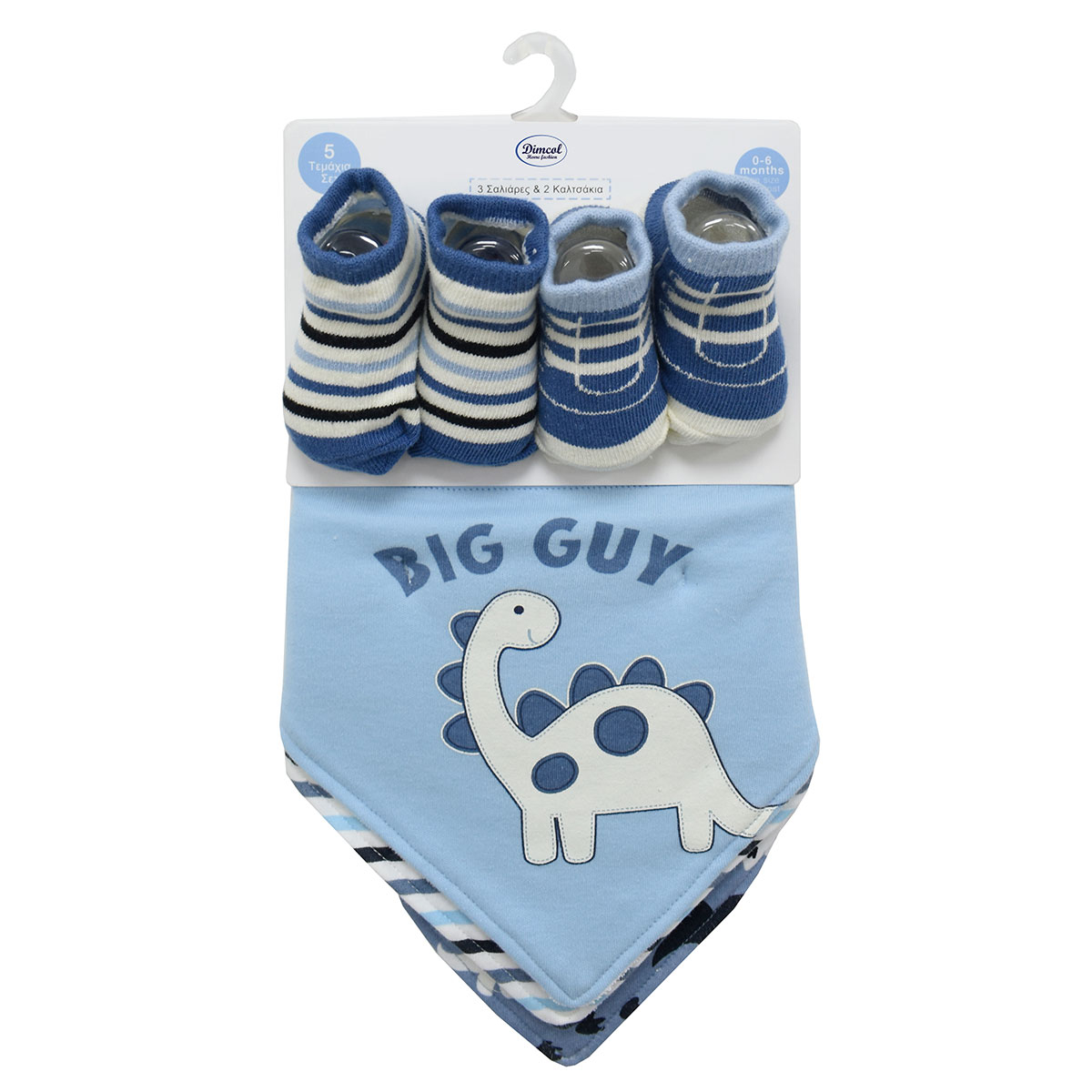 | DimcolΣαλιάρες - Μπαντάνα & Βρεφικά Καλτσάκια (Σετ 5τμχ) Dimcol Dinosaur 24 Sky Blue
