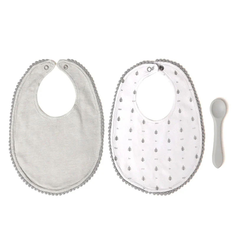 Σαλιάρες (Σετ 2τμχ) + Κουτάλι Φαγητού Σιλικόνης Kiokids 5080 Γκρι