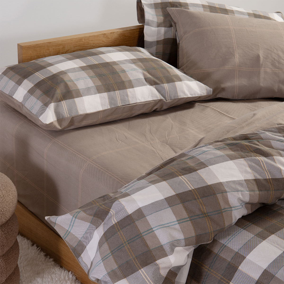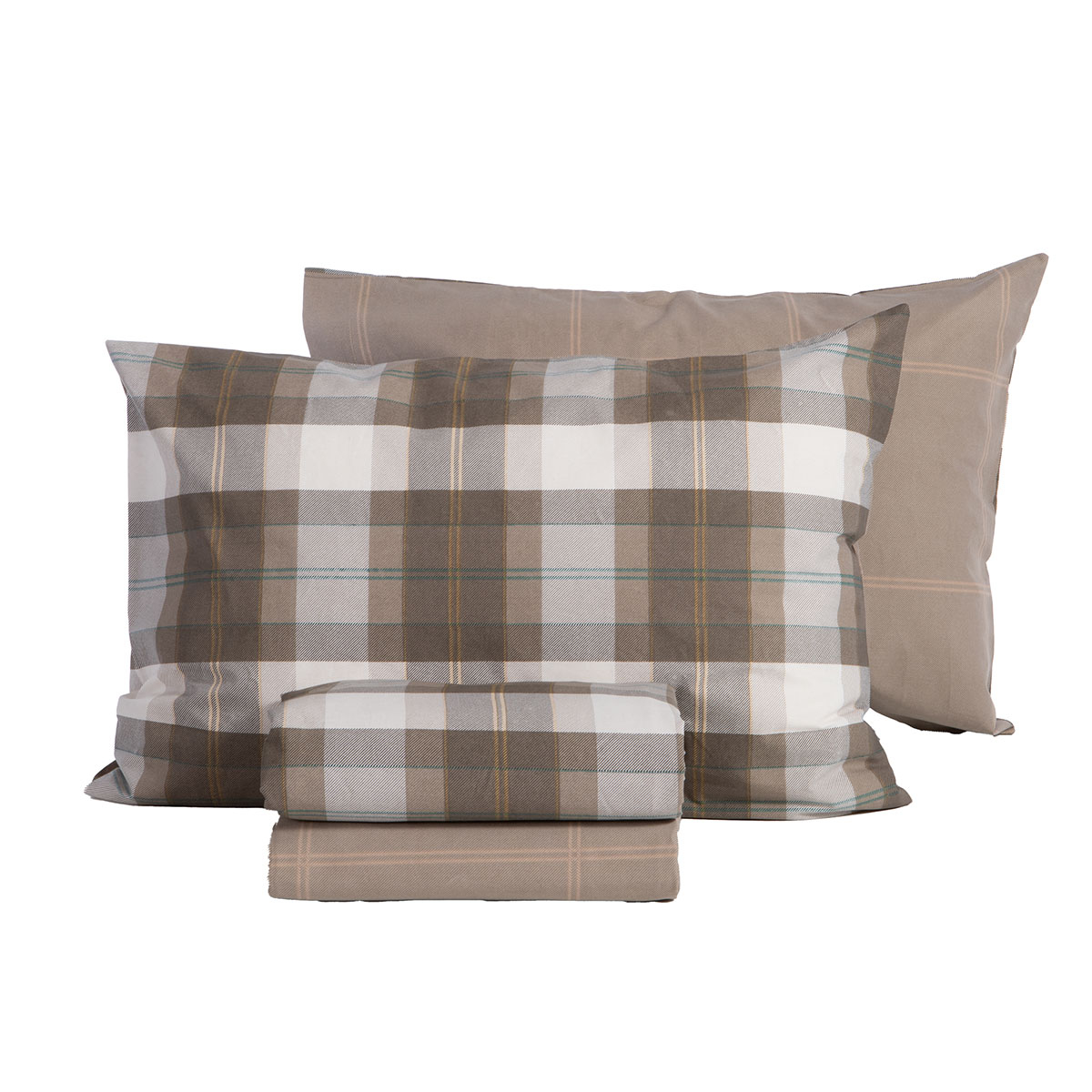 Σετ διπλά σεντόνια από την εταιρεία Nef-Nef με καρό σχέδιο σε μπεζ αποχρώσεις και εκρού-πράσινες λεπτομέρειες. Είναι κατασκευασμένα από 100% βαμβάκι 144 κλωστών, που προσφέρει απαλότητα και ανθεκτικότητα. Το κατωσέντονο είναι μπεζ με καρό σχέδιο. Στο σετ περιλαμβάνονται 2 μαξιλαροθήκες φάκελος διπλής όψης με την μία μεριά να έχει το σχέδιο του πανωσέντονου και η άλλη του κατωσέντονου. **Το σχέδιο στις μαξιλαροθήκες ενδέχεται να διαφέρει από αυτό της φωτογραφίας, καθώς η εταιρεία παράγει μαξιλαροθήκες από όλο το σχέδιο του υφάσματος και τις συσκευάζει με τυχαία σειρά.** Συνδυάστε τα με τα υπόλοιπα είδη της ίδιας σειράς για ένα ολοκληρωμένο σετ. Η εταιρεία Nef-Nef διαθέτει πιστοποίηση Oeko-Tex, που εγγυάται ότι τα προϊόντα της είναι απαλλαγμένα από επιβλαβείς χημικές ουσίες.