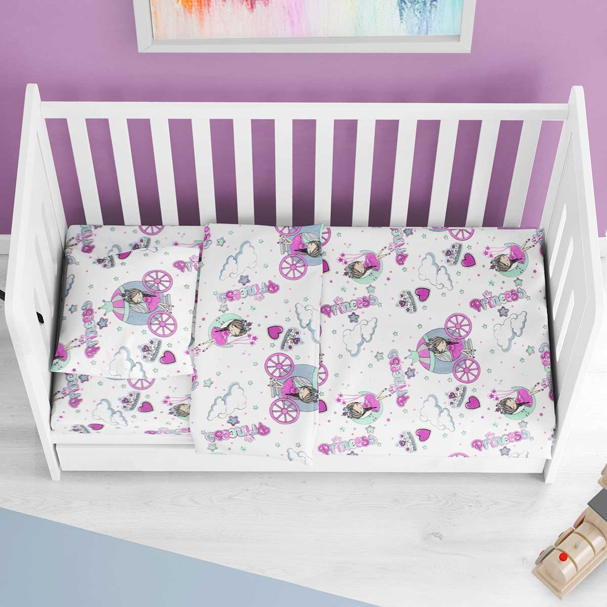 | DimcolΣεντόνια Κούνιας (Σετ 3τμχ) Dimcol Princess 389 White-Lila