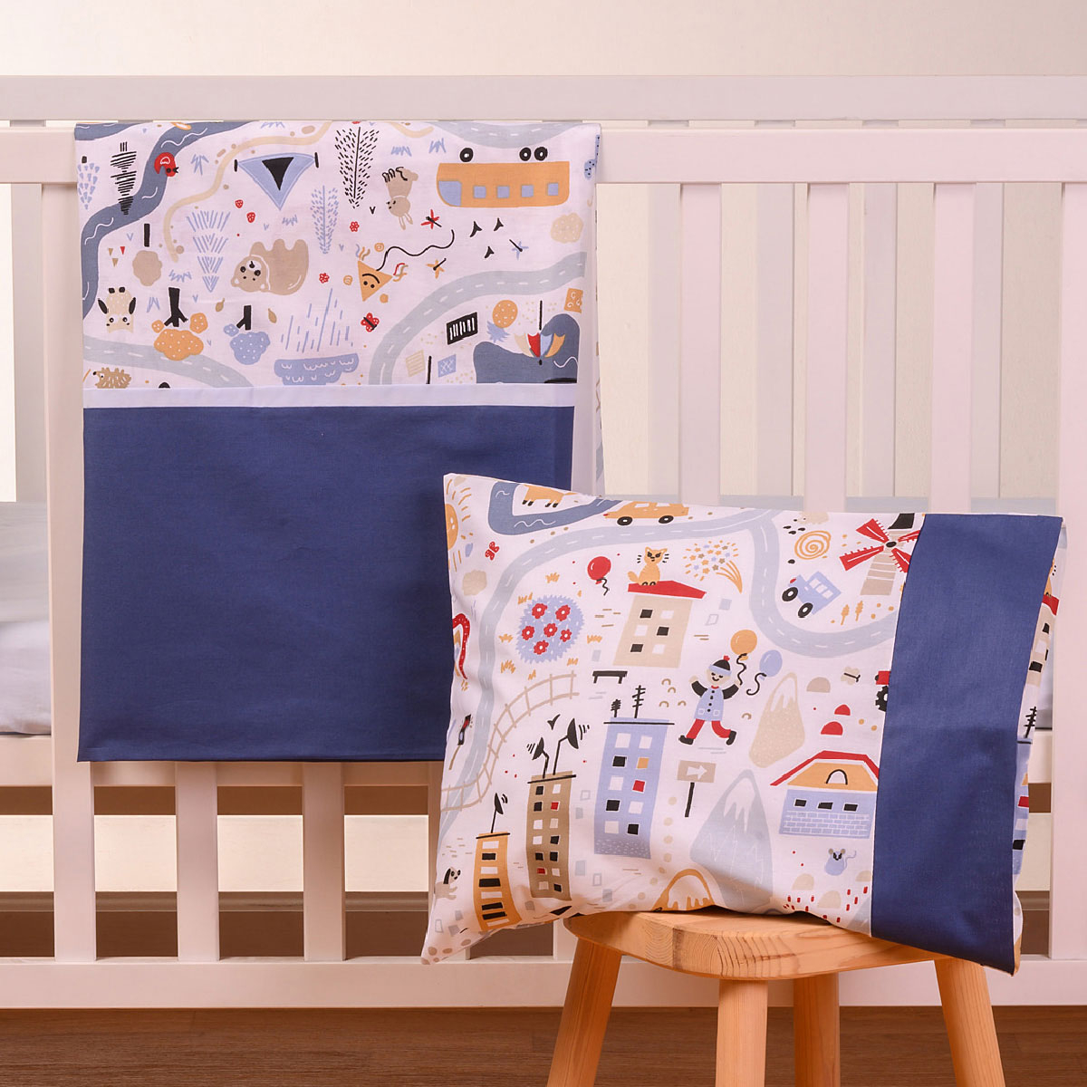 Σετ σεντόνια για την κούνια του μωρού σε λευκό φόντο, με μπλε- κόκκινες λεπτομέρειες και σχέδιο παιδικές φιγούρες από την εταιρεία Abo. Το ύφασμα είναι 100% βαμβάκι 100% βαμβάκι που τα καθιστά μαλακά και ανθεκτικά. Με πιστοποίηση υφάσματος Oeko-Tex. Το κατωσέντονο διαθέτει λάστιχο και η μαξιλαροθήκη είναι φάκελος και έχει το σχέδιο του πανωσέντονου στην φάσα. Συνδυάστε τα με τα υπόλοιπα προϊόντα του ίδιου σετ για ένα ολοκληρωμένο αποτέλεσμα.
