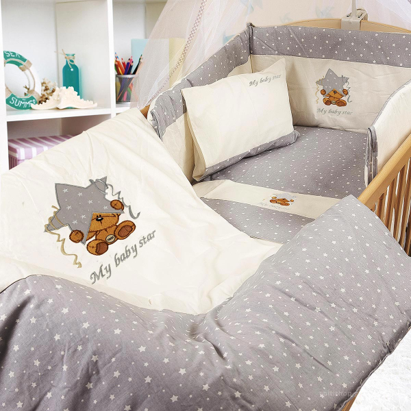 | DimcolΣεντόνια Κούνιας (Σετ) Dimcol Αστέρι 129 Εκρού/Γκρι