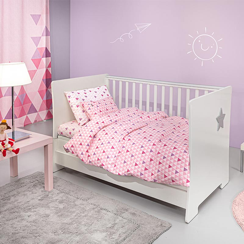 Σεντόνια κούνιας σετ με μοντέρνο σχέδιο σε ροζ αποχρώσεις με λιλά-φούξια λεπτομέρειες από την εταιρεία Guy Laroche. Είναι κατασκευασμένα από 100% βαμβάκι 144 κλωστών που τα καθιστά ιδιαιτέρα απαλά και κατάλληλα για το βρεφικό δερματάκι. Το κατωσέντονο έχει μοντέρνο σχέδιο σε λευκό-ροζ χρώμα. Στο σετ περιλαμβάνεται και η μαξιλαροθήκη με φάσα με το σχέδιο του πανωσέντονου. Συνδυάστε τα με τα υπόλοιπα προϊόντα του ίδιου σχεδίου για ένα ολοκληρωμένο αποτέλεσμα στο βρεφικό δωμάτιο.