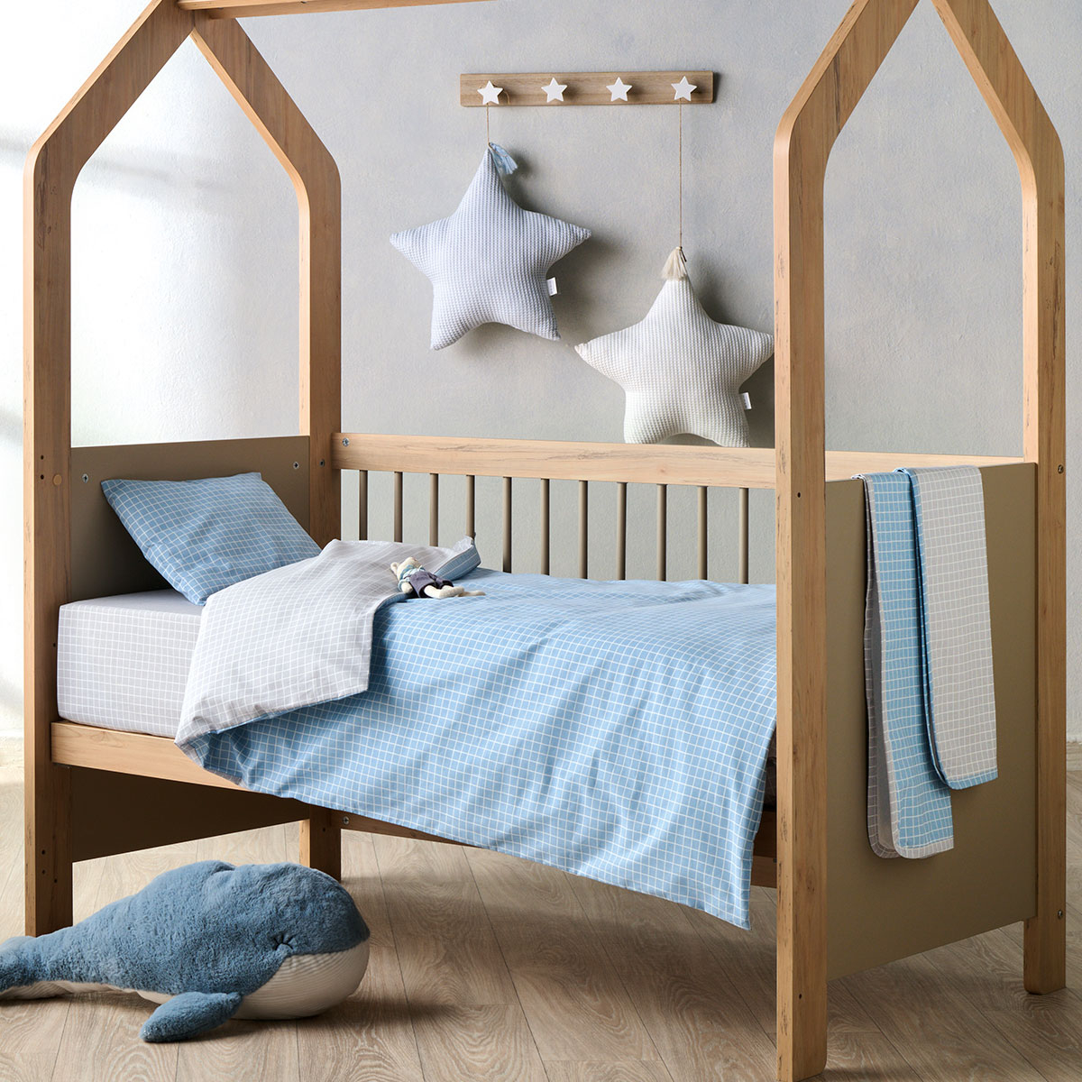 Σετ σεντόνια για την κούνια του μωρού από την εταιρεία Kentia σε γαλάζιο χρώμα και καρό σχέδιο με λευκές λεπτομέρειες. Το ύφασμα είναι 100% βαμβάκι 150 κλωστών που προσφέρει απαλότητα και ανθεκτικότητα. Το κατωσέντονο έχει καρό σχέδιο σε γκρι χρώμα. Η μαξιλαροθήκη είναι φάκελος και έχει το σχέδιο του πανωσέντονου. Συνδυάστε τα με τα υπόλοιπα προϊόντα του ίδιου σετ για ένα ολοκληρωμένο αποτέλεσμα.
