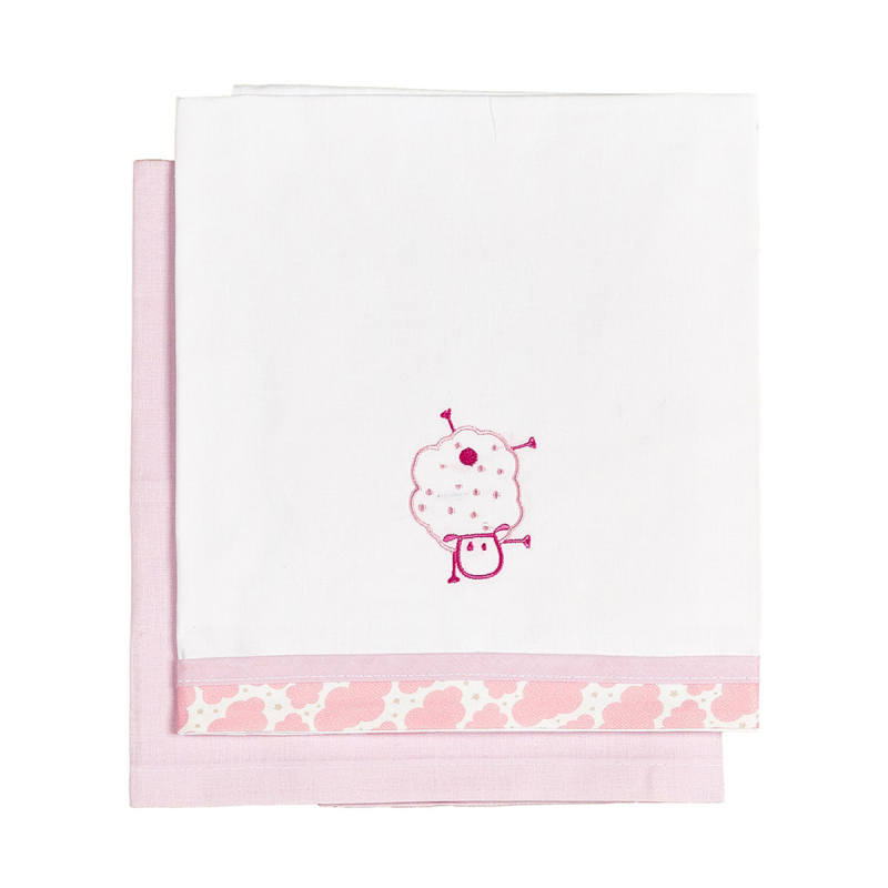Βρεφικά σεντόνια για την καλαθούνα ή το λίκνο της εταιρείας Κόσμος του Μωρού. Το ένα σεντόνι είναι λευκό με κεντητό σχέδιο ζωάκια και ρέλι ενώ το άλλο είναι μονόχρωμο ροζ. Το ύφασμα είναι 100% βαμβακερό που προσφέρει απαλότητα και ανθεκτικότητα.