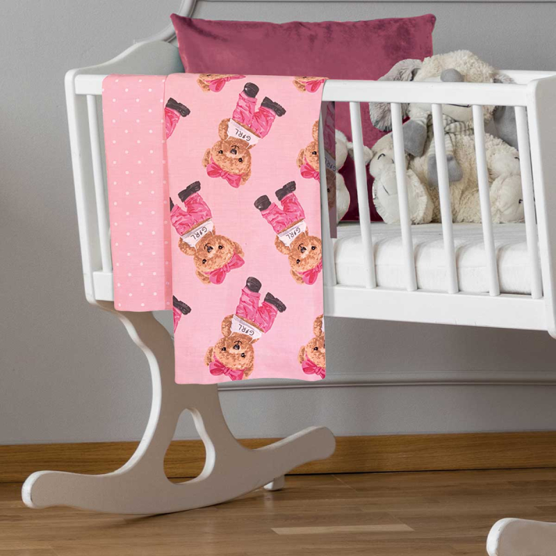 Σεντόνια για την καλαθούνα ή το λίκνο του μωρού σας σετ σε ροζ χρώμα, με φούξια λεπτομέρειες και αρκουδάκια σχέδιο από τον οίκο Greenwich Polo Club. Η ποιότητα τους είναι από 70% βαμβάκι 30% polyester με πυκνότητα ύφανσης 150 κλωστών που τα καθιστούν μαλακά, ανθεκτικά και εύκολα στο σιδέρωμα. Συνδυάστε τα με τα υπόλοιπα είδη της ίδιας σειράς για ένα ολοκληρωμένο αποτέλεσμα.