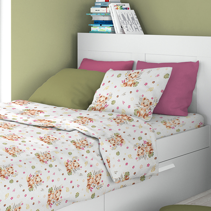 Σεντόνι μονό και μαξιλαροθήκη σε λευκό φόντο, με πολύχρωμες λεπτομέρειες και σχέδιο λιονταράκι της εταιρίας Dimcol. Η ποιότητά τους είναι από 100% βαμβάκι 144 κλωστών, που τα καθιστά απαλά και ανθεκτικά. **Στο σετ περιλαμβάνεται η μαξιλαροθήκη (φάκελος) με το σχέδιο του σεντονιού. ** Συνδυάστε τα με τα υπόλοιπα είδη της ίδιας σειράς για ένα ολοκληρωμένο αποτέλεσμα. Συσκευασία polybag.