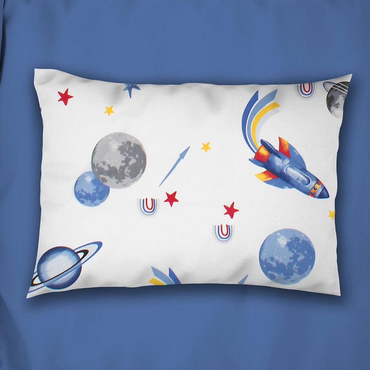 Σεντόνια μονά από την εταιρεία Dimcol. Έχουν λευκό φόντο και σχέδιο διαστήματος σε μπλε αποχρώσεις. Είναι κατασκευασμένα από 100% βαμβάκι 144 κλωστών που τα καθιστά απαλά και ανθεκτικά. Στο σετ περιλαμβάνεται η μαξιλαροθήκη φάκελος. Συνδυάστε τα με τα υπόλοιπα είδη της ίδιας σειράς για ένα ολοκληρωμένο σετ. Ελληνικής κατασκευής. **Το σχέδιο στην μαξιλαροθήκη ενδέχεται να διαφέρει από αυτό της φωτογραφίας, καθώς η εταιρεία παράγει μαξιλαροθήκες από όλο το σχέδιο του υφάσματος και τις συσκευάζει με τυχαία σειρά.**