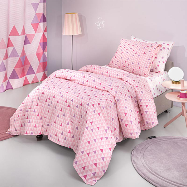 Σεντόνια μονά σετ με μοντέρνο σχέδιο σε ροζ αποχρώσεις με λιλά-φούξια λεπτομέρειες από την εταιρεία Guy Laroche. Είναι κατασκευασμένα από 100% βαμβάκι 144 κλωστών που τα καθιστά ιδιαιτέρα απαλά. Το κατωσέντονο έχει μοντέρνο σχέδιο σε λευκό-ροζ χρώμα και διατίθεται με ή χωρίς λάστιχο. Στο σετ περιλαμβάνεται και η μαξιλαροθήκη με φάσα με το σχέδιο του πανωσέντονου. Συνδυάστε τα με τα υπόλοιπα προϊόντα του ίδιου σχεδίου για ένα ολοκληρωμένο αποτέλεσμα.