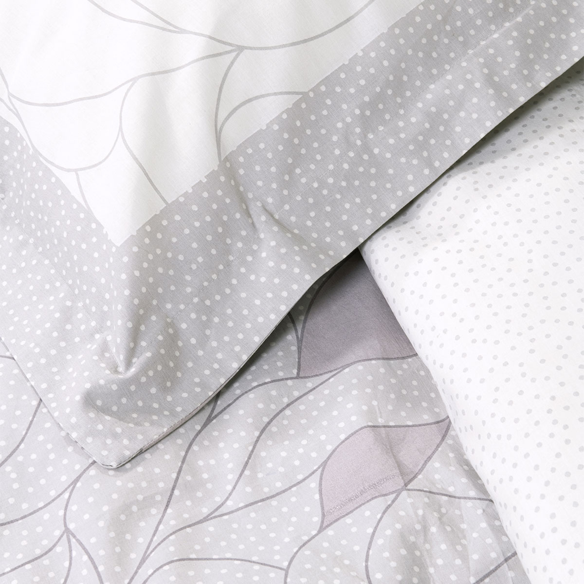 Σετ υπέρδιπλα σεντόνια σε γκρι χρώμα, με εκρού λεπτομέρειες και μοντέρνο πουά σχέδιο από την εταιρεία Nima. Το ύφασμα είναι 100% βαμβάκι 144 κλωστών που τα καθιστά ανθεκτικά και απαλά. Στο σετ περιλαμβάνονται οι μαξιλαροθήκες oxford. Υπάρχει επιλογή τύπου κατωσέντονου με ή χωρίς λάστιχο. Συνδυάστε τα με τα υπόλοιπα είδη του ίδιου σχεδίου για ένα ολοκληρωμένο αποτέλεσμα.