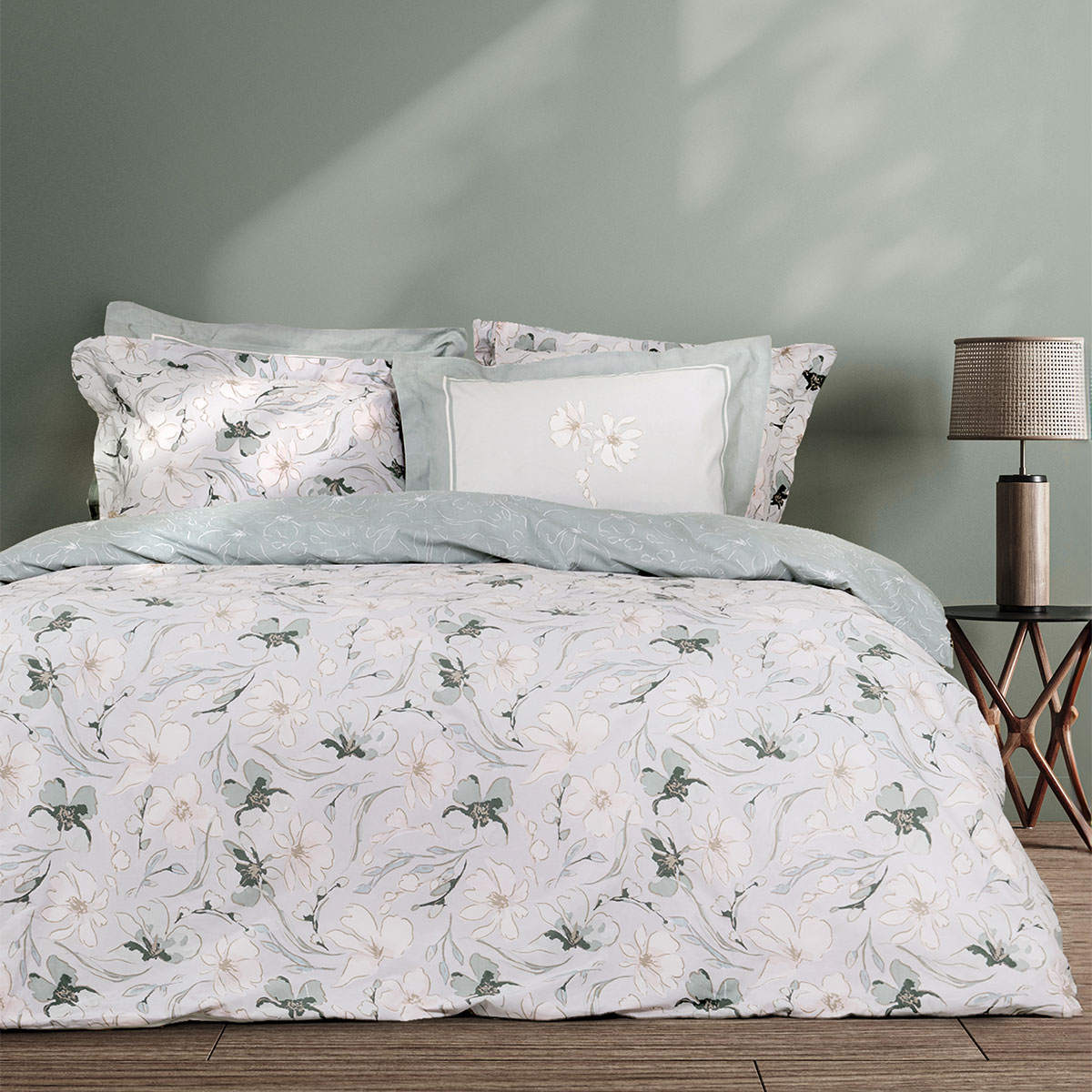 Σετ γίγας σεντόνια σε γκρι φόντο, με βεραμάν λεπτομέρειες και φλοράλ σχέδιο από την εταιρεία Nima. Το ύφασμα είναι 100% βαμβάκι 144 κλωστών που τα καθιστά ανθεκτικά και απαλά. Στο σετ περιλαμβάνονται οι μαξιλαροθήκες oxford. Υπάρχει επιλογή τύπου κατωσέντονου με ή χωρίς λάστιχο. Συνδυάστε τα με τα υπόλοιπα είδη του ίδιου σχεδίου για ένα ολοκληρωμένο αποτέλεσμα.