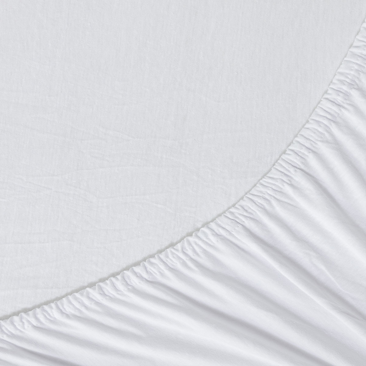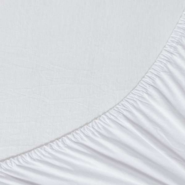 Μεμονωμένο ημίδιπλο σεντόνι με λάστιχο από την εταιρεία La Luna σε λευκό χρώμα. Είναι μακό, κατασκευασμένο από 100% βαμβακερό ύφασμα που το καθιστά ιδιαίτερα απαλό. Έχει μεγάλη ελαστικότητα και τέλεια εφαρμογή στο στρώμα. Μπορεί να χρησιμοποιηθεί και ως απλό επίστρωμα για την προστασία του στρώματός σας από την σκόνη κάτω από τα σεντόνια.
