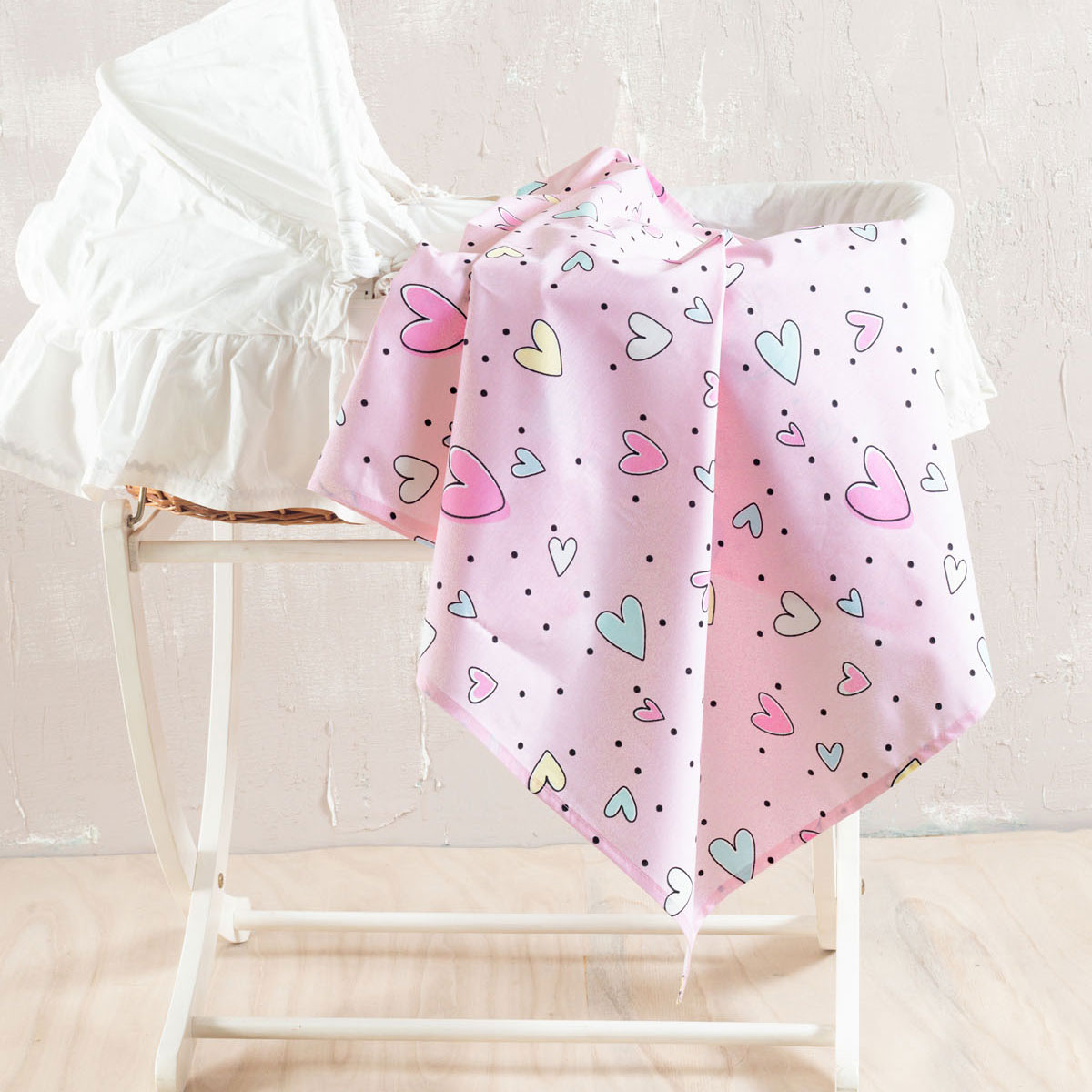 Σεντόνι για το λίκνο ή την καλαθούνα του μωρού σε ροζ χρώμα, με πολύχρωμες λεπτομέρειες και σχέδιο καρδιές από την εταιρεία Rythmos. Είναι κατασκευασμένο από 100% βαμβάκι που το καθιστά απαλό και ανθεκτικό. Συνδυάστε το με τα υπόλοιπα είδη της σειράς για ένα ολοκληρωμένο αποτέλεσμα στο βρεφικό δωμάτιο.
