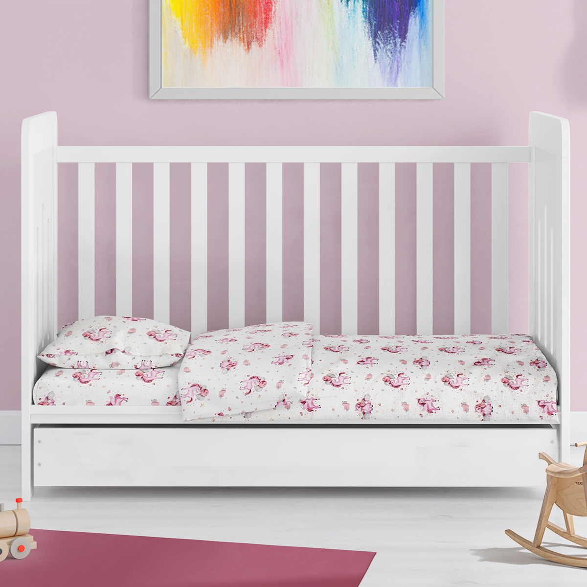 | DimcolΣεντόνι Λίκνου (80x110) Dimcol Unicorn 208 White-Pink