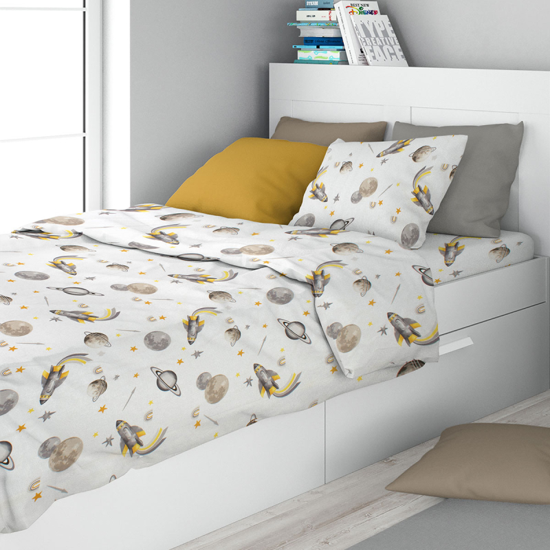 | DimcolΣεντόνι Μονό Επίπεδο + Μαξιλαροθήκη (Σετ) Dimcol Space Mission 183 White - Grey