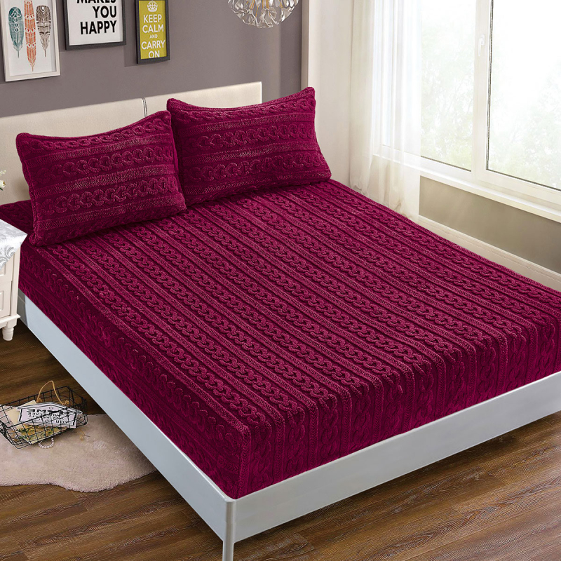 | Silk FashionΣεντόνι Fleece Υπέρδιπλο Με Λάστιχο + Μαξιλαροθήκη (Σετ) Silk Fashion Braid Μπορντώ