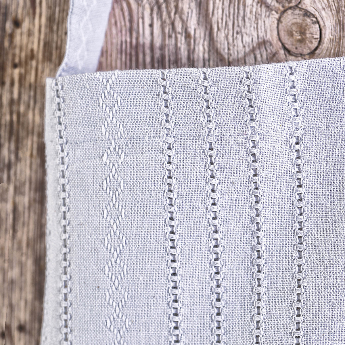 Σετ κουζίνας σε γκρι χρώμα και ανάγλυφη ριγέ πλέξη από την εταιρεία Rythmos. Η σύνθεση τους αποτελείται από 100% βαμβάκι με ζακάρ νηματοβαφή που τα καθιστά ανθεκτικά και ιδανικά για καθημερινή χρήση. Το σετ περιλαμβάνει μία ποδιά με τσέπη, ένα γάντι και μία πιάστρα.