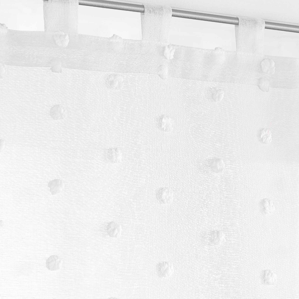 Σετ δύο κουρτίνες ιδανικές για τοποθέτηση σε παράθυρο κουζίνας, χολ, κλπ. Είναι κατασκευασμένες από βουάλ ύφασμα 100% polyester σε λευκό χρώμα με λευκά πομ πομ. Στο επάνω μέρος διαθέτουν τούνελ που περνάει κατευθείαν στη ράβδο κρεμάσματος. Το ύφασμα είναι χαμηλής σκίασης που επιτρέπει σε άπλετο φως να μπει μέσα στο δωμάτιο. Συνδυάστε το χρώμα και το ύφος των κουρτινών με τον χώρο σας και ανανεώστε την διακόσμησή του.