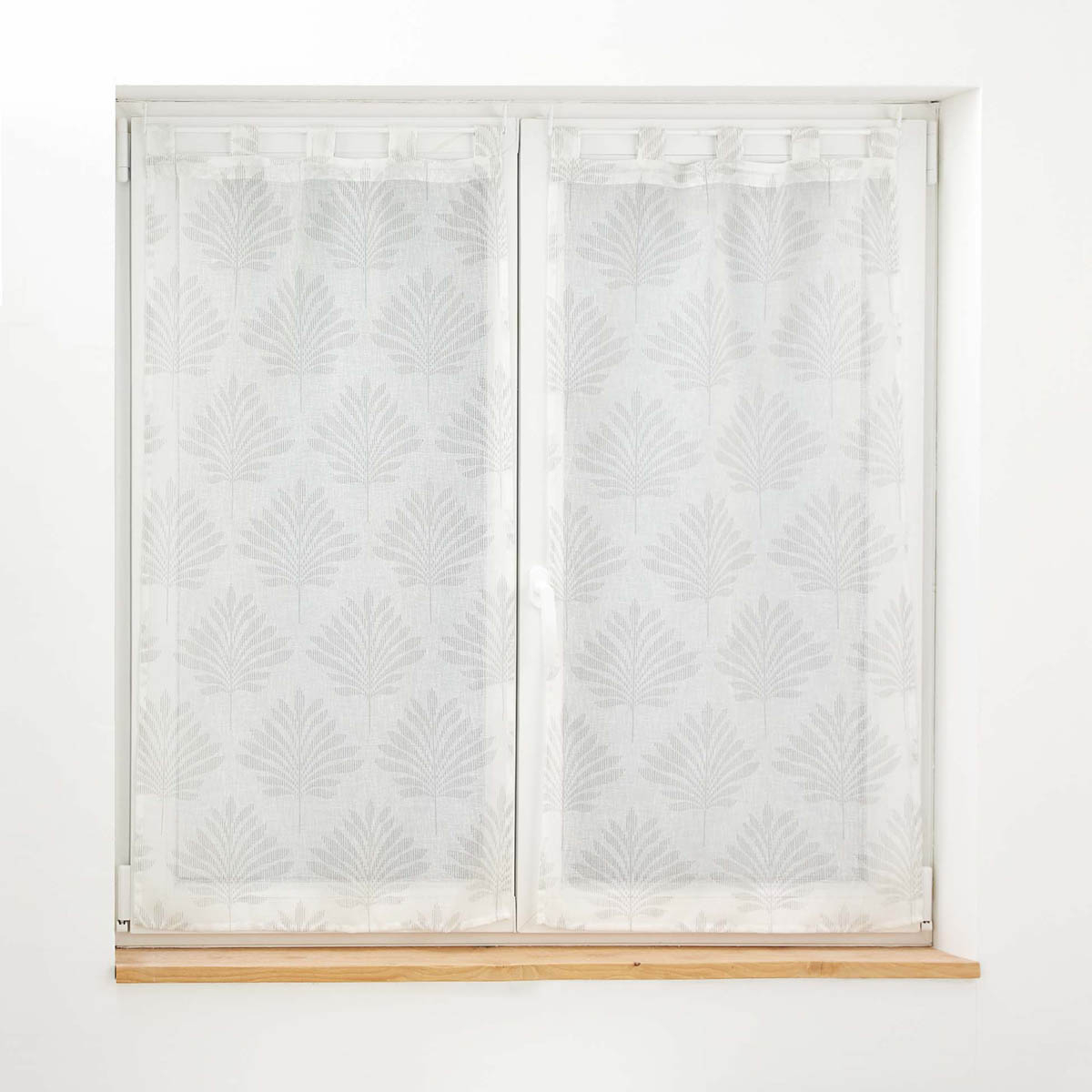 Σετ δύο κουρτίνες 60Πx120Υ χαμηλής σκίασης ιδανικές για τοποθέτηση σε παράθυρο κουζίνας, το χολ, κλπ. Το ύφασμα είναι βουάλ 100% polyester σε λευκό-εκρού χρώμα και έχει φλοράλ σχέδιο. Στο επάνω μέρος διαθέτουν τιράντες κρεμάσματος για εύκολη τοποθέτηση. Συνδυάστε το χρώμα και το ύφος των κουρτινών με τον χώρο σας και ανανεώστε την διακόσμησή του.