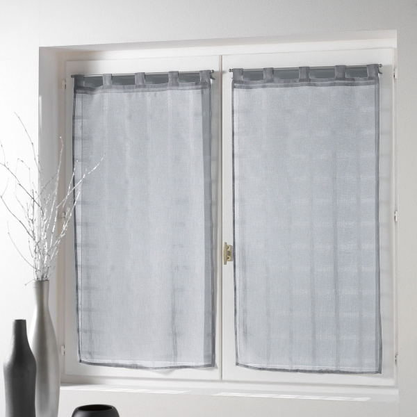 Σετ δύο κουρτίνες 60Πx160Υ χαμήλης σκίασης ιδανικές για τοποθέτηση σε παράθυρο κουζίνας, το χολ, κλπ. Το ύφασμα είναι βουάλ 100% polyester σε γκρι απόχρωση με διακριτικό γεωμετρικό μοτίβο. Στο επάνω μέρος διαθέτουν τιράντες κρεμάσματος με διαμέτρο 3cm. Συνδυάστε το χρώμα και το ύφος των κουρτινών με τον χώρο σας και ανανεώστε την διακόσμησή του.