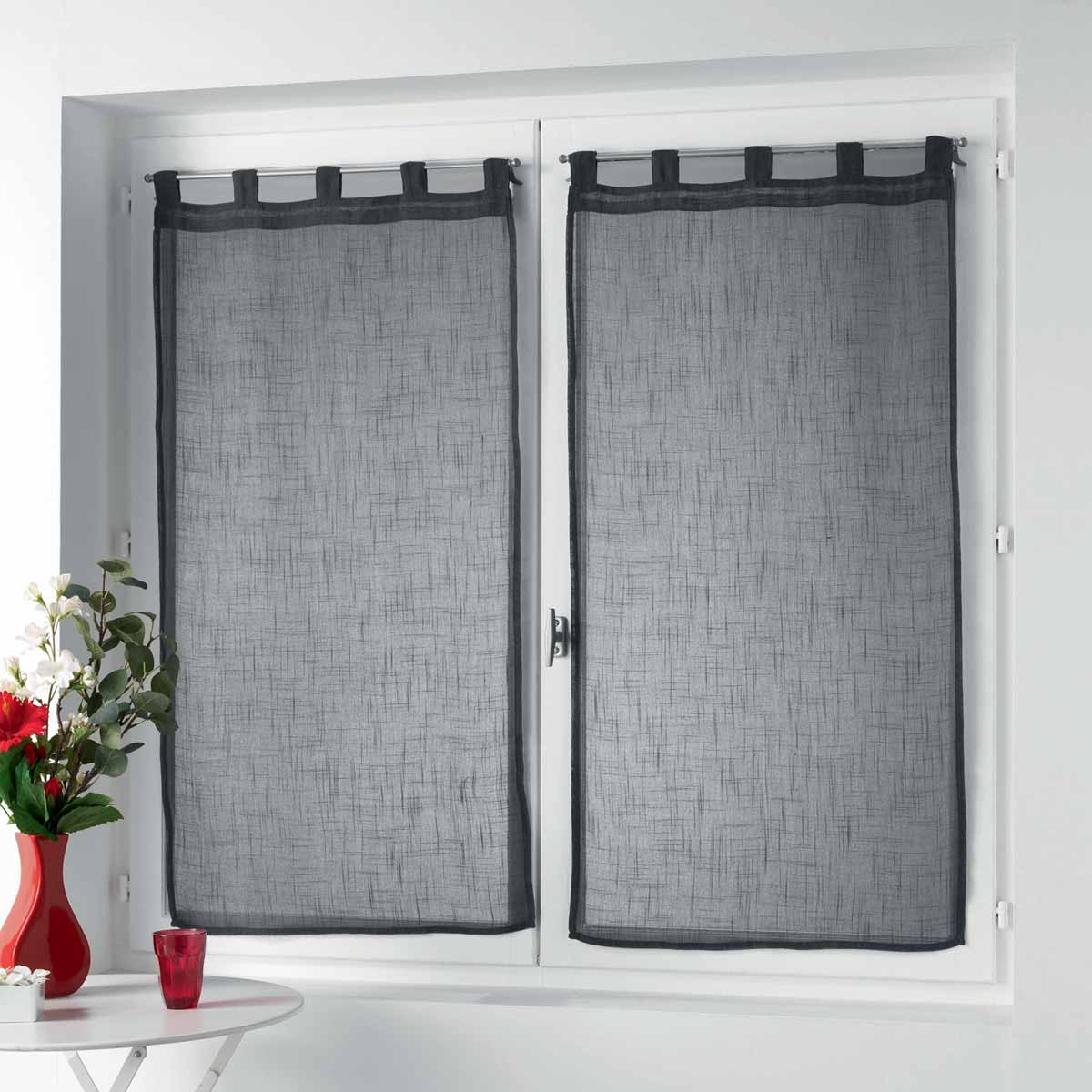 Σετ δύο κουρτίνες χαμήλης σκίασης ιδανικές για τοποθέτηση σε παράθυρο κουζίνας, το χολ, κλπ. Το ύφασμά τους είναι γκρι με εφέ λινής ύφανσης από 100% polyester, που επιτρέπει στο φως να περνάει. Στο επάνω μέρος διαθέτουν τιράντες κρεμάσματος με διαμέτρο 3cm.