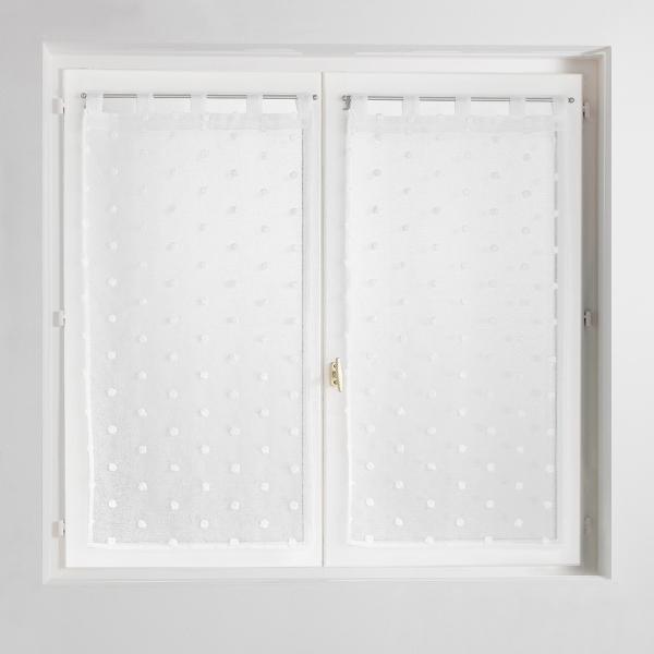 Σετ δύο κουρτίνες ιδανικές για τοποθέτηση σε παράθυρο κουζίνας, χολ, κλπ. Είναι κατασκευασμένες από βουάλ ύφασμα 100% polyester σε λευκό χρώμα με λευκά πομ πομ. Στο επάνω μέρος διαθέτουν τούνελ που περνάει κατευθείαν στη ράβδο κρεμάσματος. Το ύφασμα είναι χαμηλής σκίασης που επιτρέπει σε άπλετο φως να μπει μέσα στο δωμάτιο. Συνδυάστε το χρώμα και το ύφος των κουρτινών με τον χώρο σας και ανανεώστε την διακόσμησή του.