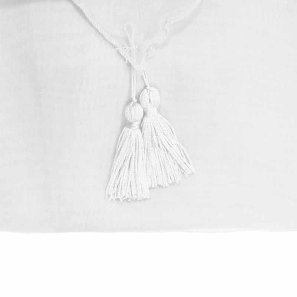Σετ δύο κουρτίνες χαμήλης σκίασης ιδανικές για τοποθέτηση σε παράθυρο κουζίνας, το χολ, κλπ. Το ύφασμά τους είναι λευκό βουάλ από 100% polyester, που επιτρέπει στο φως να περνάει. Στο επάνω μέρος διαθέτουν τιράντες κρεμάσματος με διαμέτρο 3cm και στο κάτω καταλήγουν σε φουντίτσα.