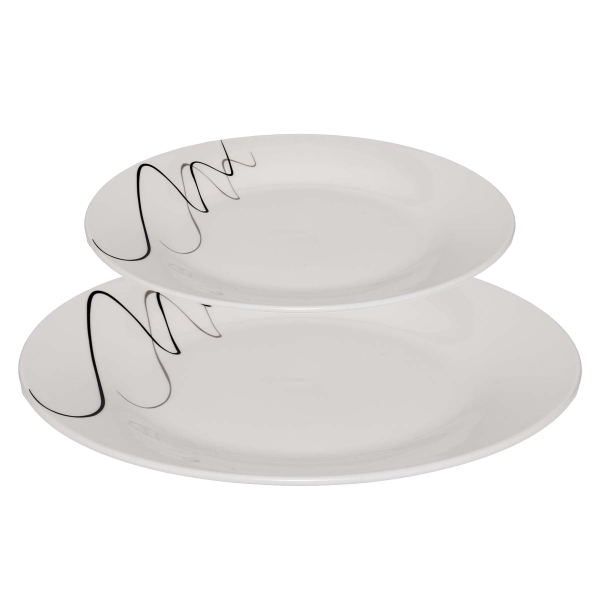 Σερβίτσιο φαγητού σετ 18 τεμάχια αποτελούμενο από ρηχά πιάτα, βαθιά πιάτα και πιάτα πάστας σε μαύρο και λευκό χρώμα με μοντέρνο σχέδιο. Σετ πιάτα κατασκευασμένα από πορσελάνη.