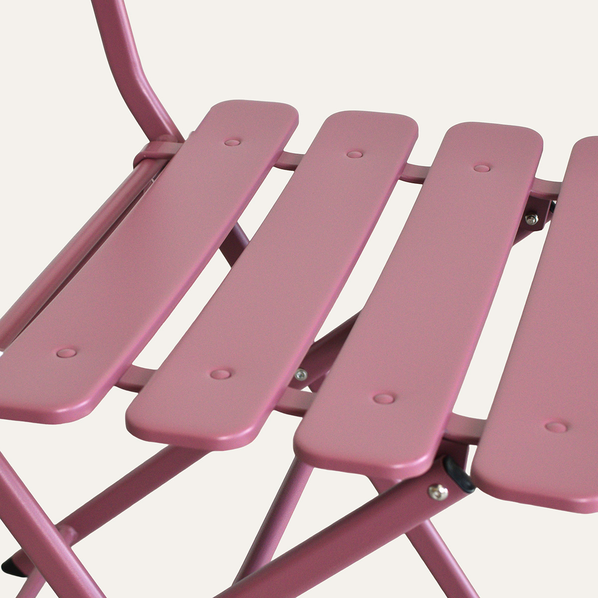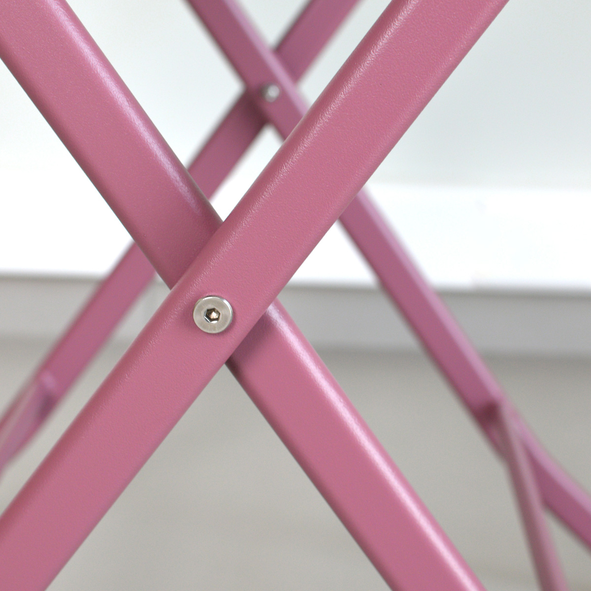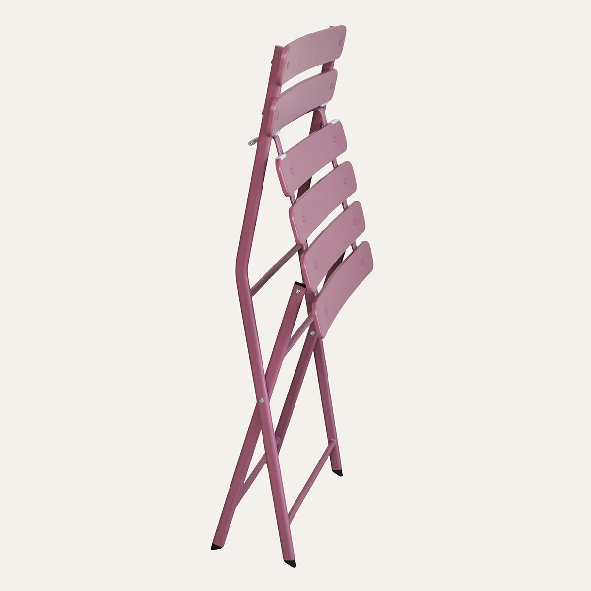 Σετ κήπου με καρέκλες και τραπέζι εξωτερικού χώρου σε ροζ απόχρωση. Περιλαμβάνονται 4 καρέκλες με εύκολη αναδίπλωση για εξοικονόμηση χώρου τις ώρες που δεν τις χρησιμοποιείτε. Είναι κατασκευασμένα από ατσάλι με ειδική επεξεργασία στο χρώμα που αποτρέπει την οξείδωση, τη διάβρωση και την σκουριά. Το χρώμα τους δεν αλλοιώνεται από την επαφή με τον ήλιο και αυτό τα καθιστά ιδανικά για το μπαλκόνι, τον κήπο ή την βεράντα. Κατά τη διάρκεια της έντονης βροχής ή του χειμώνα, καλό είναι να τα αποθηκεύετε σε προστατευμένο μέρος. Διάσταση τραπεζιού κλειστό: 110εκ.Μx12εκ.Πx98εκ.Υ. Διάσταση καρέκλας κλειστή: 42εκ.Μx10εκ.Πx96εκ.Υ Μέγιστο βάρος αντοχής καρέκλας: 100 kg.