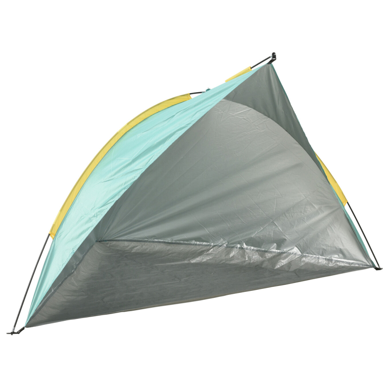 Τριγωνικό σκίαστρο για την παραλία με ύφασμα κατασκευασμένο από ανθεκτικό πολυεστέρα σε βεραμάν χρώμα με κίτρινες λεπτομέρειες και εσωτερική επένδυση αλουμινίου. Διαθέτει δείκτη προστασίας 50+ για να προστατεύει αποτελεσματικά από τις ακτίνες του ήλιου. Ιδανικό για κάμπινγκ, εκδρομές στην παραλία ή για τον κήπο. Είναι ασφαλές καθώς στερεώνεται με 3 πασαλάκια (περιλαμβάνονται )στο έδαφος που το κρατάνε σταθερό ακόμα κι όταν φυσάει. Η σκηνή συνοδεύεται από μια εύχρηστη τσάντα αποθήκευσης, ώστε να μπορείτε να την πάρετε οπουδήποτε.